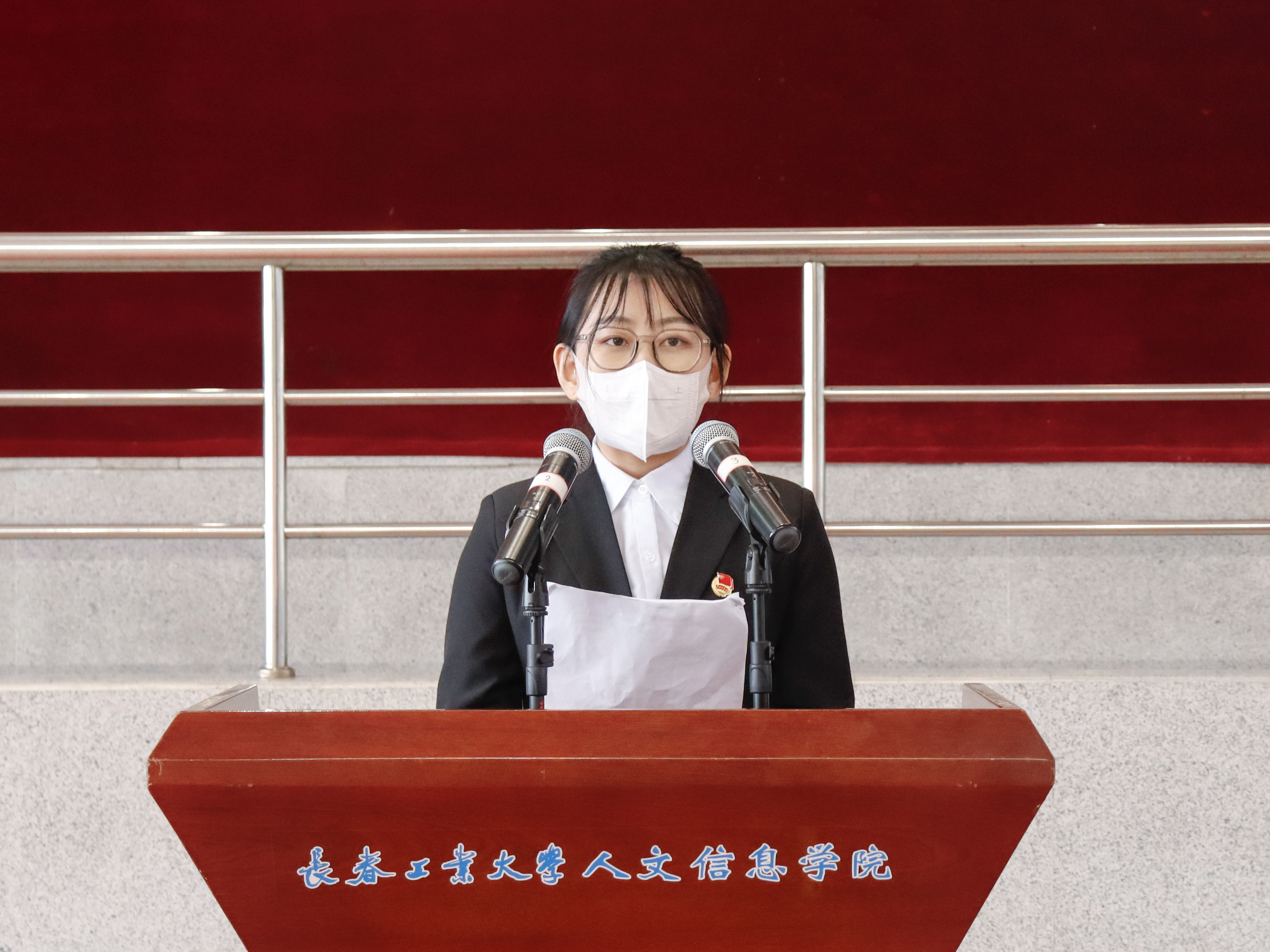 典礼在庄严的国歌声中拉开帷幕,教师代表、外国语学院院长唐艳玲,在校生代表、信息工程学院2019级学生孙然,新生代表、自动化学院2022级学生陶屿哲分别作了发言。