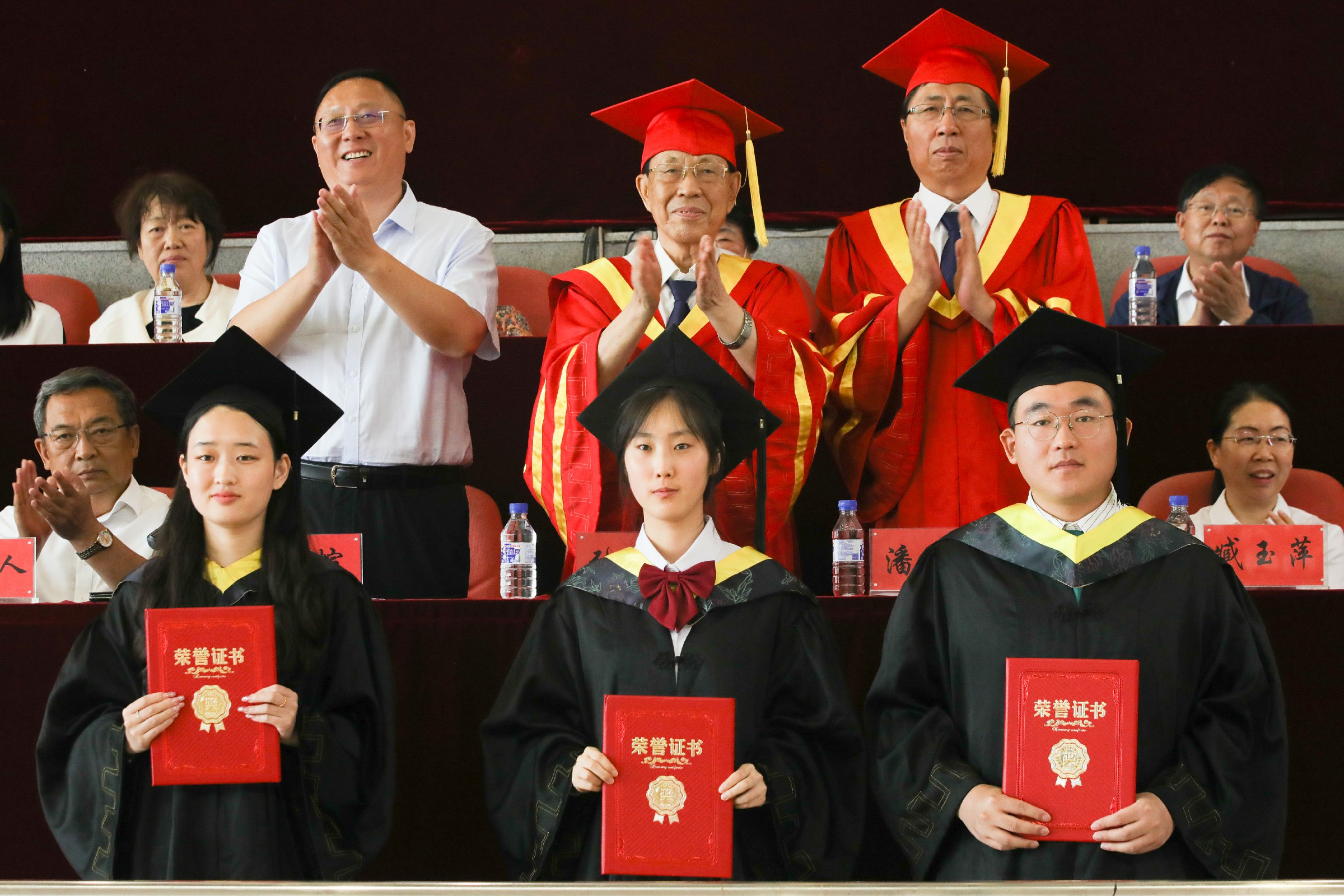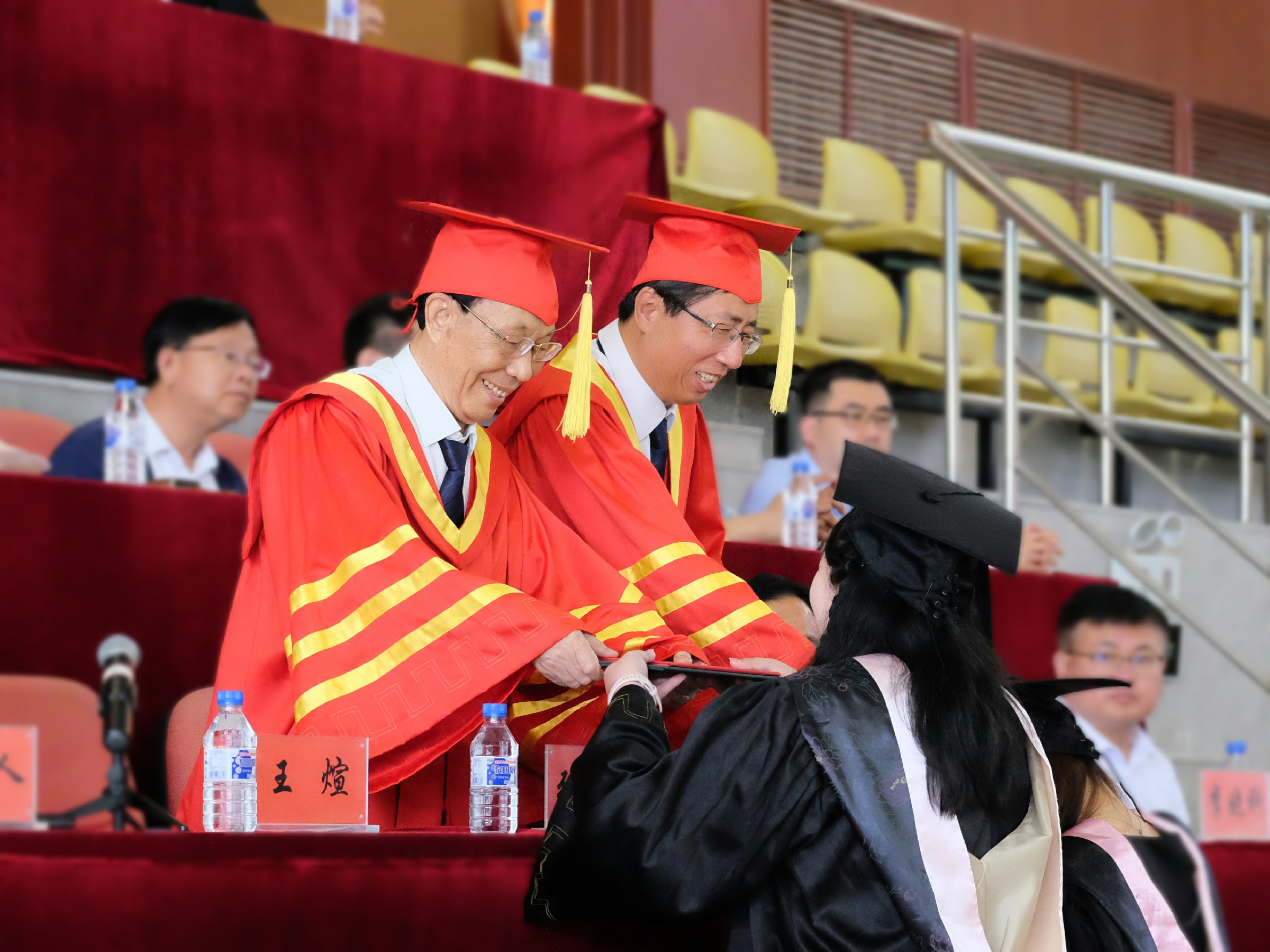 典礼现场,董事长张兆华、校长潘福林向毕业生代表拨穗正冠授予学位,并颁发毕业证书、学位证书。学校领导为优秀毕业生代表颁奖。