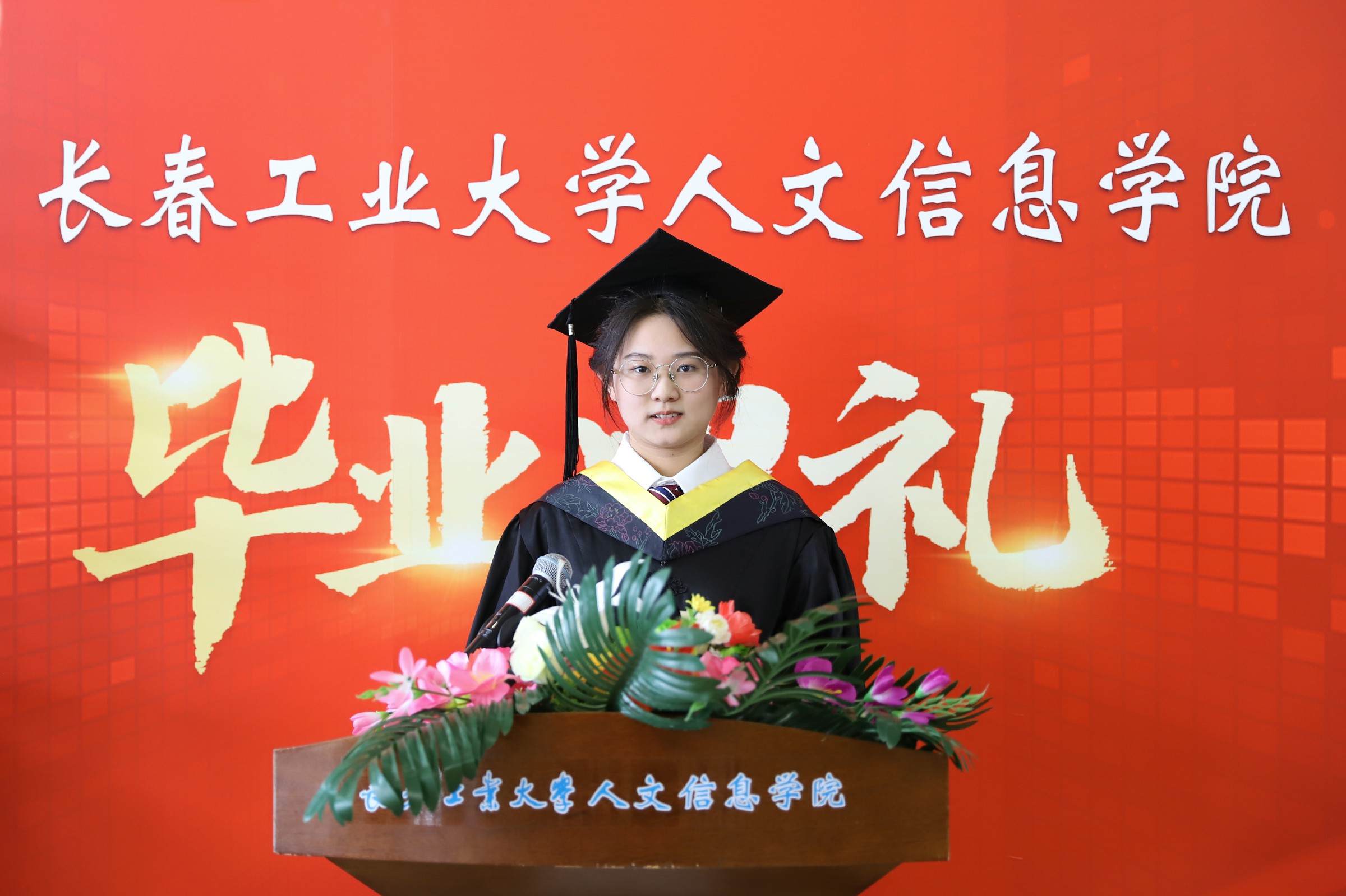 计算机科学与工程学院赵佳琪同学作为毕业生代表发言,表达了对母校和老师们的感恩之情与浓浓的不舍之意,并表示要传承母校“两强”精神,不畏艰难险阻,不遗余力地去追求、探索未来,不负师恩,争做栋梁,为母校争光。