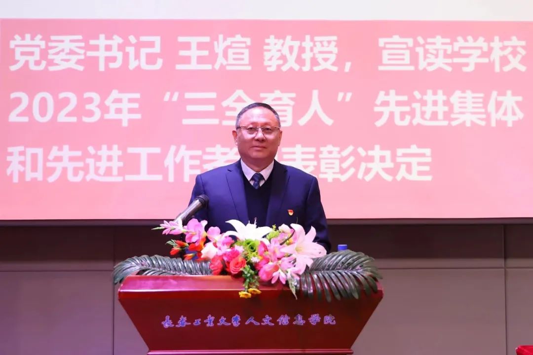 会上,党委书记王煊宣读了学校《关于表彰2023年“三全育人”先进集体和先进工作者的决定》。