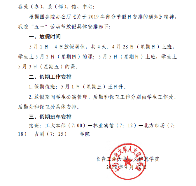 关于2019年“五一”劳动节放假的通知