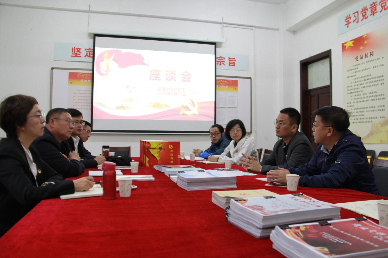 2021929日上午,学校党委书记王煊同志,组织部长贺同华同志,宣传部长王春玲同志、组织部副部长杜雪松同志深入管理学院党总支开展工作调研。
