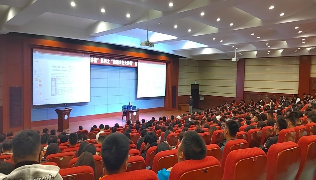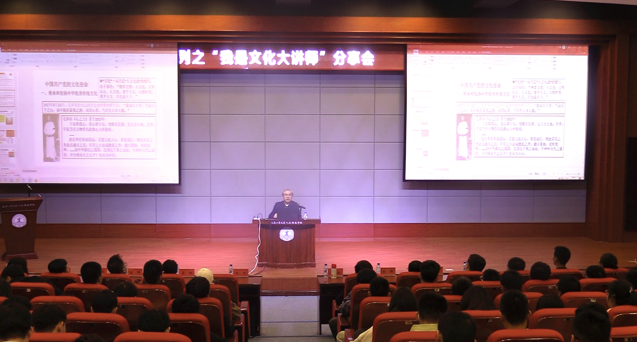 刘岩教授为参会师生作了题为《中国共产党的文化使命》的专题报告。刘教授从“文化的概念”导入,引经据典、风趣幽默地诠释了文化“四信、三观”的内涵;通过继承和发扬中华优秀传统文化、赋予马克思主义以中华文化特性、发展中国特色社会主义文化、应对百年未有之大变局构建中华新文明四个篇章,全面系统阐述中国共产党的文化使命。刘教授的生动讲述,赢得了全场师生的热烈掌声。