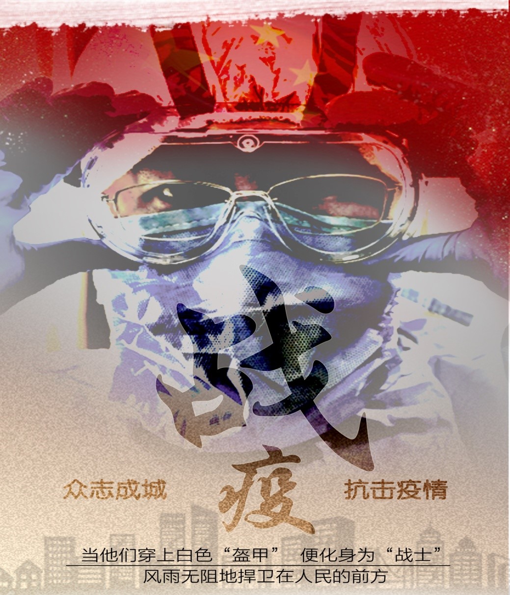 海报设计作品:众志成城 抗击疫情,作者:孙杨,艺术设计学院党员教师