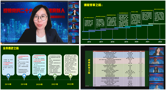 伏玉、徐艳召、王玉军、李佳慧、李伟娜五位老师依次进行线上教学与课程思政建设经验分享。伏玉老师聚焦团队协作,打造专业思政品牌;徐艳召老师坚持以赛促改,坚持新技术的学习与运用;王玉军老师力争言传身教,以研促思,做实做细每一个环节;李佳慧老师现身说法,畅谈智慧课堂建设;李伟娜老师分享了课程思政体系化建设的构思与路径。
