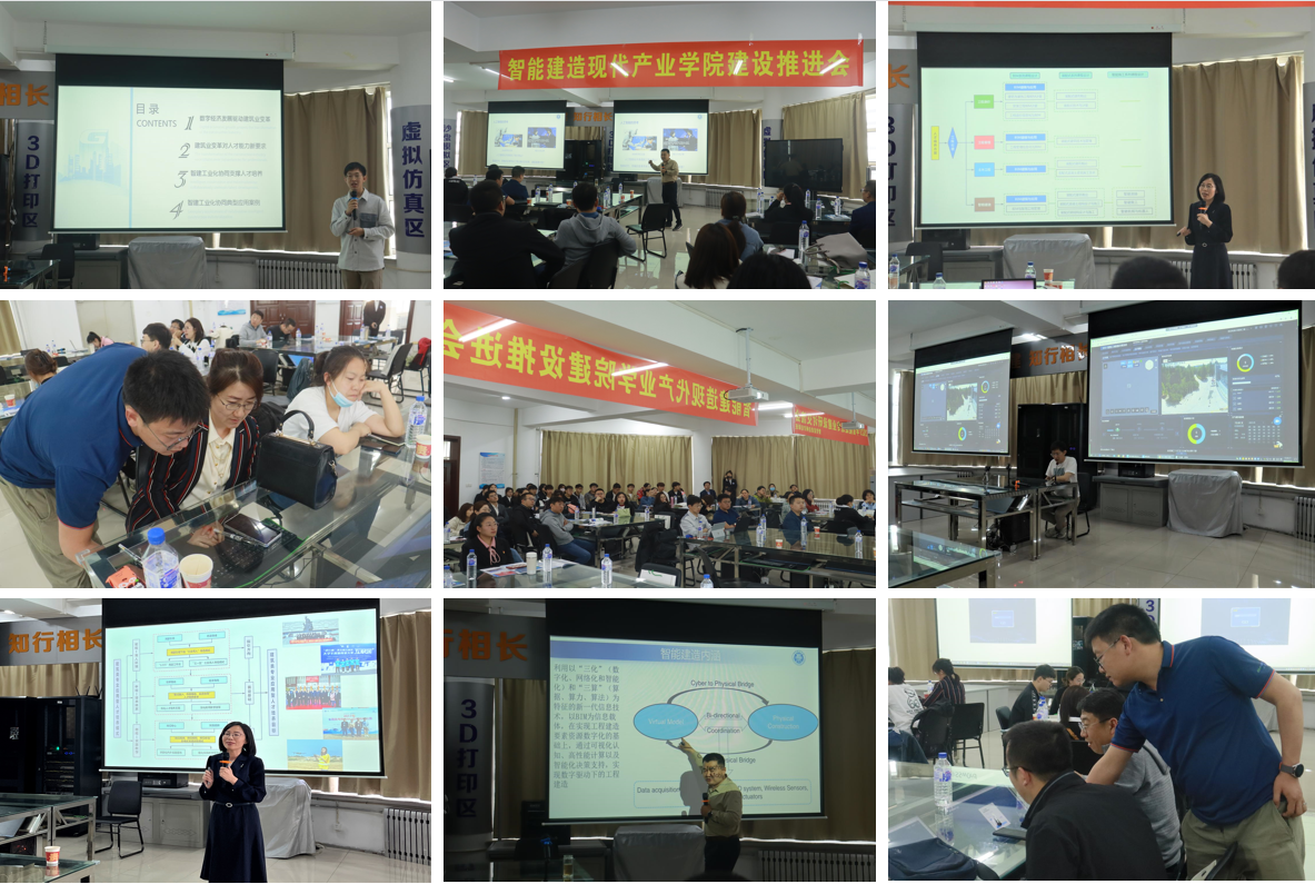 会议第一阶段,智能建造现代产业学院建设推进会暨智能建造师资培训开班仪式。智能建造现代产业学院成立于2019年,是我校重点培育的三大产业学院之一,由我校与广联达科技股份有限公司等联合建设。三年间,充分发挥校企合作优势及产业学院平台作用,积极创新智能建造人才培养模式,并培育了多项教科研成果。