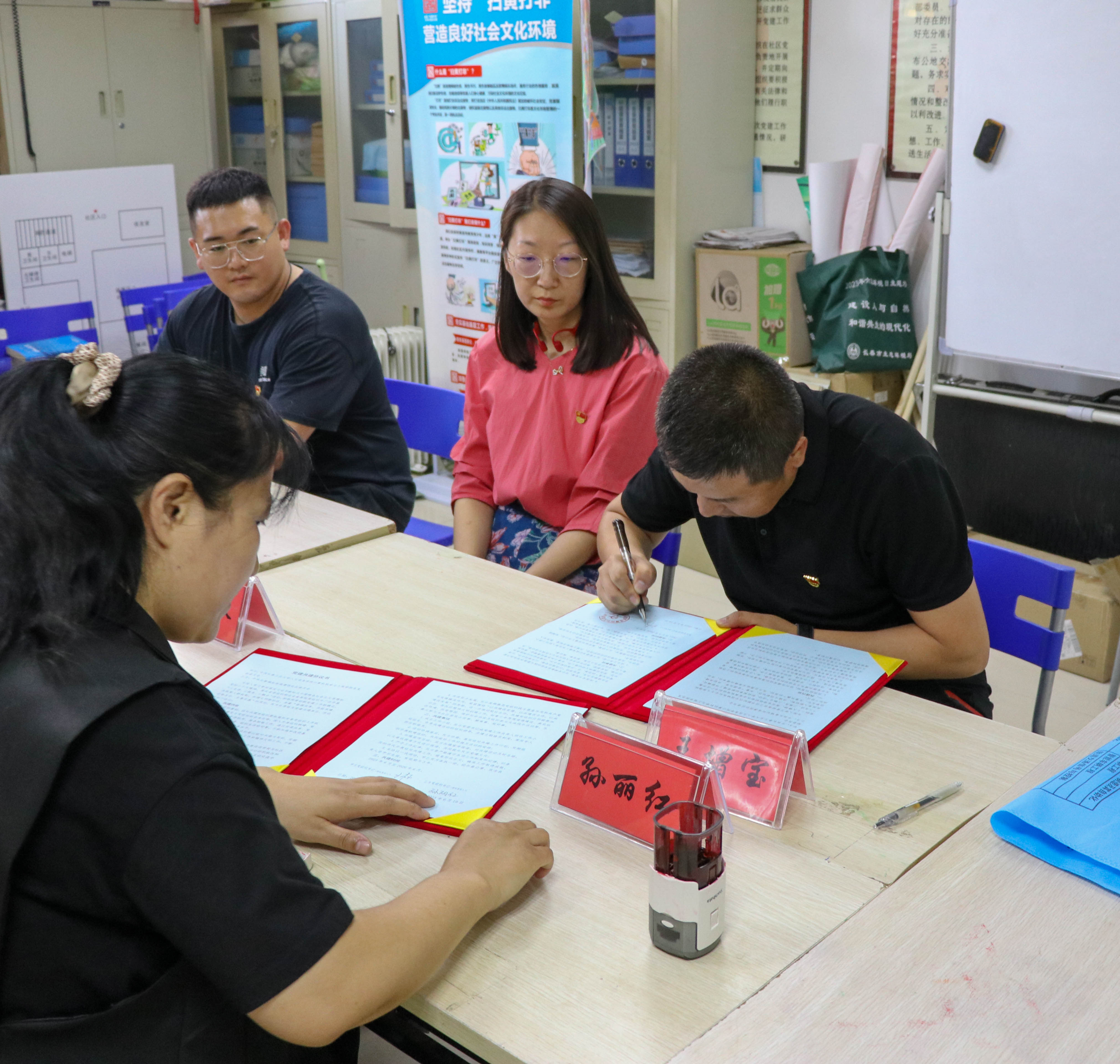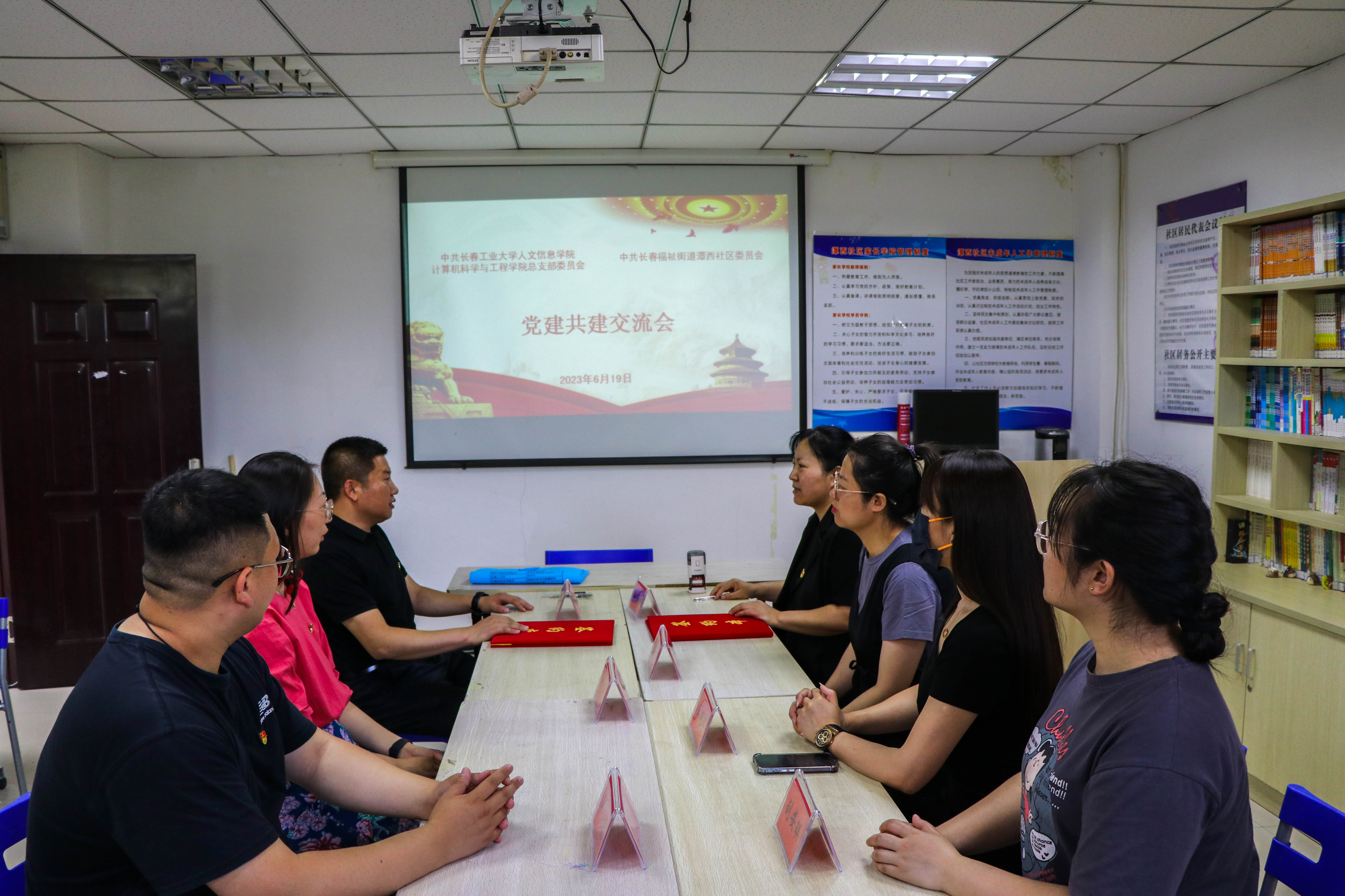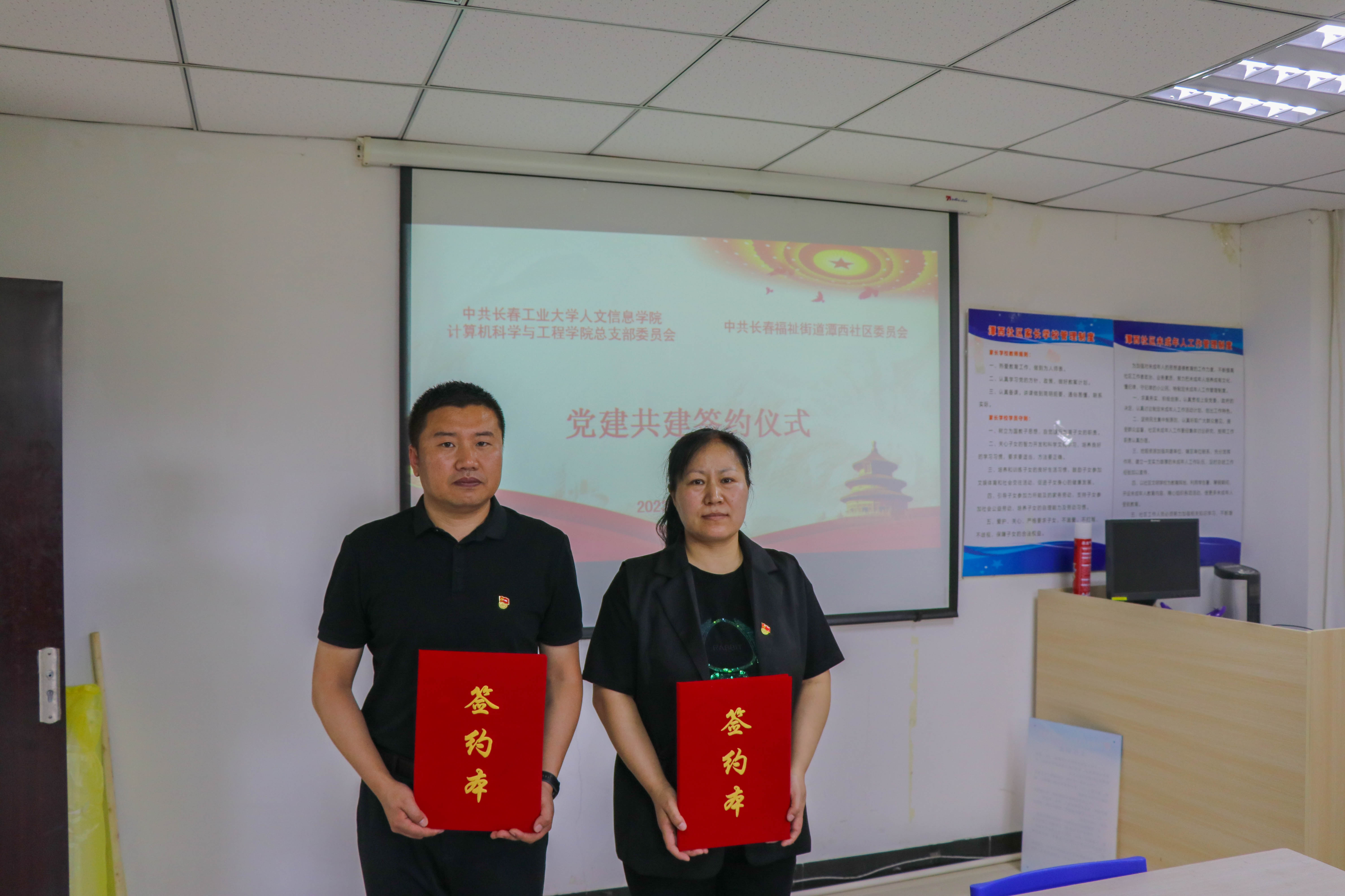为深入学习贯彻习近平新时代中国特色社会主义思想和党的二十大精神,落实省委组织部在全省高校党组织中广泛开展“三走进、三服务、三融合”活动,积极探索创新党建工作新模式,共筑育人新机制,共建文明新社区,本着“资源共享、共驻共建、优势互补、互惠双赢”的原则,6月19日,中共长春工业大学人文信息学院计算机科学与工程学院总支部委员会与中共长春福祉街道潭西社区委员会举行了党建共建签约仪式。计算机科学与工程学院党总支书记王增宝,团委书记刘莹,学院第二学生党支部书记韩磊前往社区进行调研签约。潭西社区党委副书记孙丽红、党建专职工作者姜秀敏、党建专职工作者刘安琪、党建专职工作者王艳辉等社区领导接待了我院到访老师,双方围绕社区服务、党建融合、社会实践内容等方面进行了深入交流。