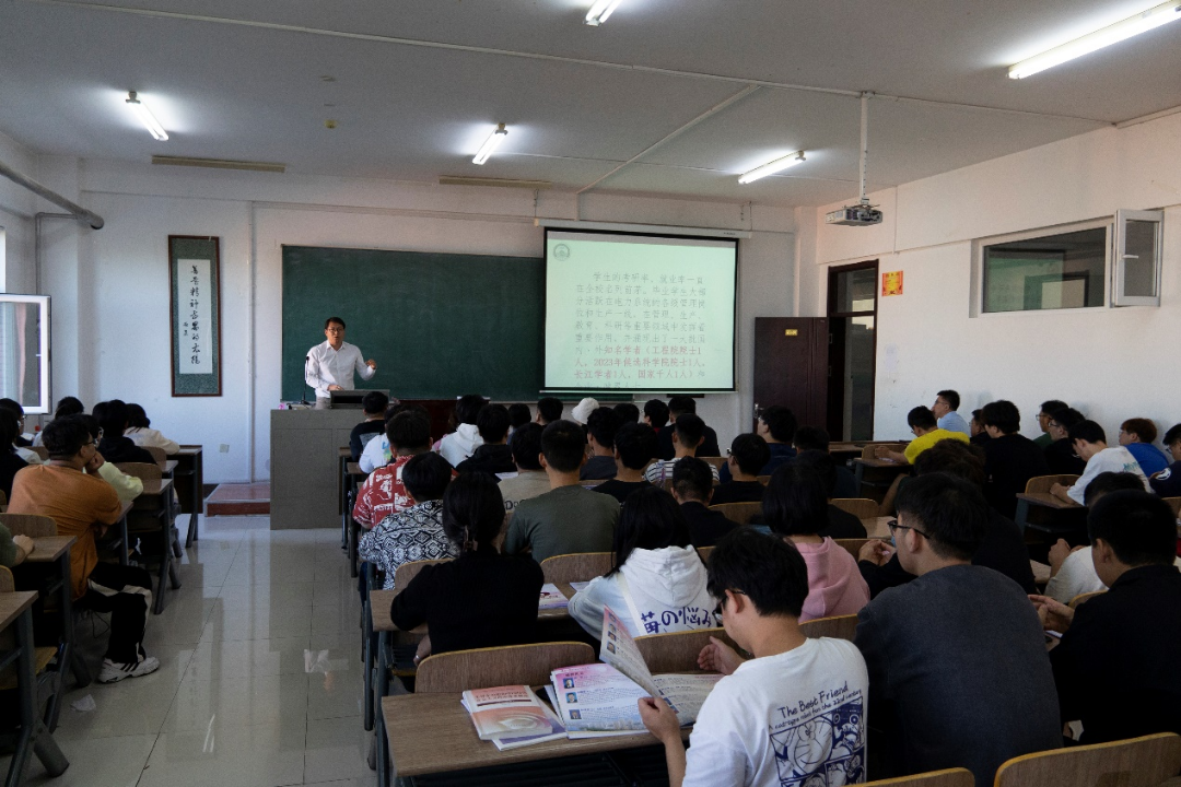 王俊成介绍了东北电力大学的基本情况。东北电力大学位于吉林省吉林市,是吉林省重点大学,入选教育部“卓越工程师教育培养计划”,首批“中西部高校基础能力建设工程”重点建设高校,并介绍自动化工程学院的专业设置、学院建设情况。学院设有“控制科学与工程系”、“仪器科学与技术系”2个主体教学机构。拥有“自动化”、“测控技术与仪器”和“机器人工程”三个本科专业;“控制科学与工程”一级学科博士授权点,“人工智能”二级交叉学科博士授权点;“控制科学与工程”、“仪器科学与技术”两个一级学科硕士授权点,“控制工程”专业学位硕士授权点。王俊成表示两院在专业设置上契合度很高,希望以后有深度的交流学习。同时热烈欢迎我校学生报考东电研究生,并对研究生招生政策与学生做了交流。