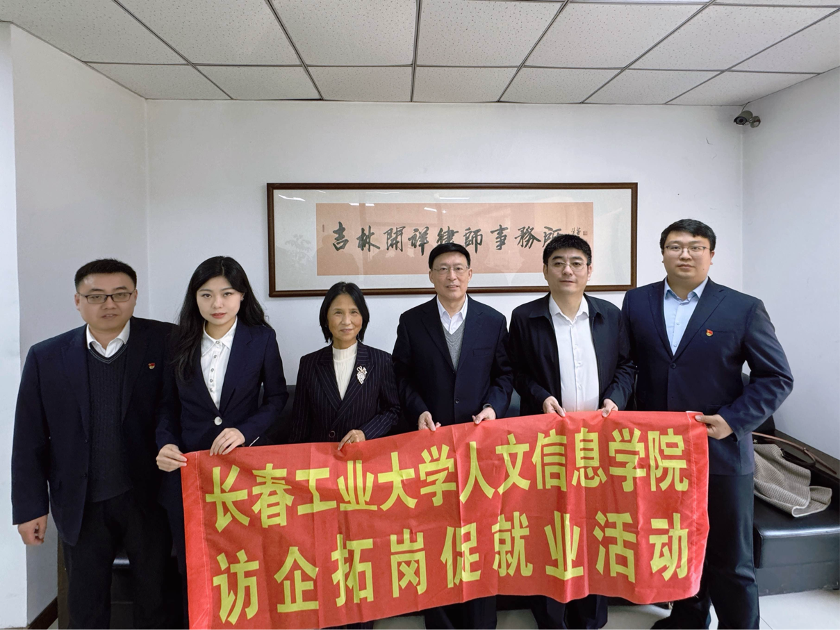 为认真落实省委书记景俊海在“创业奋斗‘就’在吉林”大学生就业创业座谈会上的讲话精神,进一步贯彻学校毕业生留吉就业创业工作推进会部署要求,全力促进毕业生高质量充分就业。3月21日,法学院院长肖宁率教研室主任王强、教师王中宝和王媛一行四人赴吉林开祥律师事务所实地走访调研,律师事务所主任孙頔、法制要案研究所驻长春联络处主任商利繁等律师热情接待。