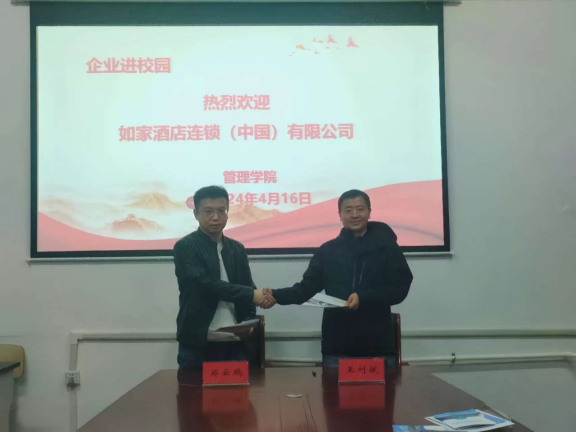 2024年4月16日,管理学院与首旅如家酒店集团签署校企合作协议。首旅如家酒店集团北华东区域及东北区域人事总监靳大为,吉林城区城市总经理王利斌,东北区域人事经理任宏庆,人事助理杨禹艳,与我校管理学院党总支书记、副院长李振坤,招生就业处就业科郑云鹏科长,管理学院团委书记马烨出席了签约仪式。