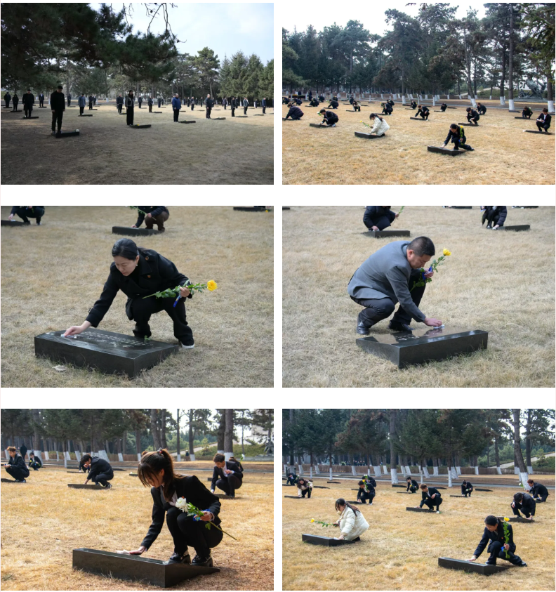 随后,师生们有序前往烈士墓区,敬献花束,擦拭烈士墓碑,以实际行动寄托对英烈的敬仰和追思之情。