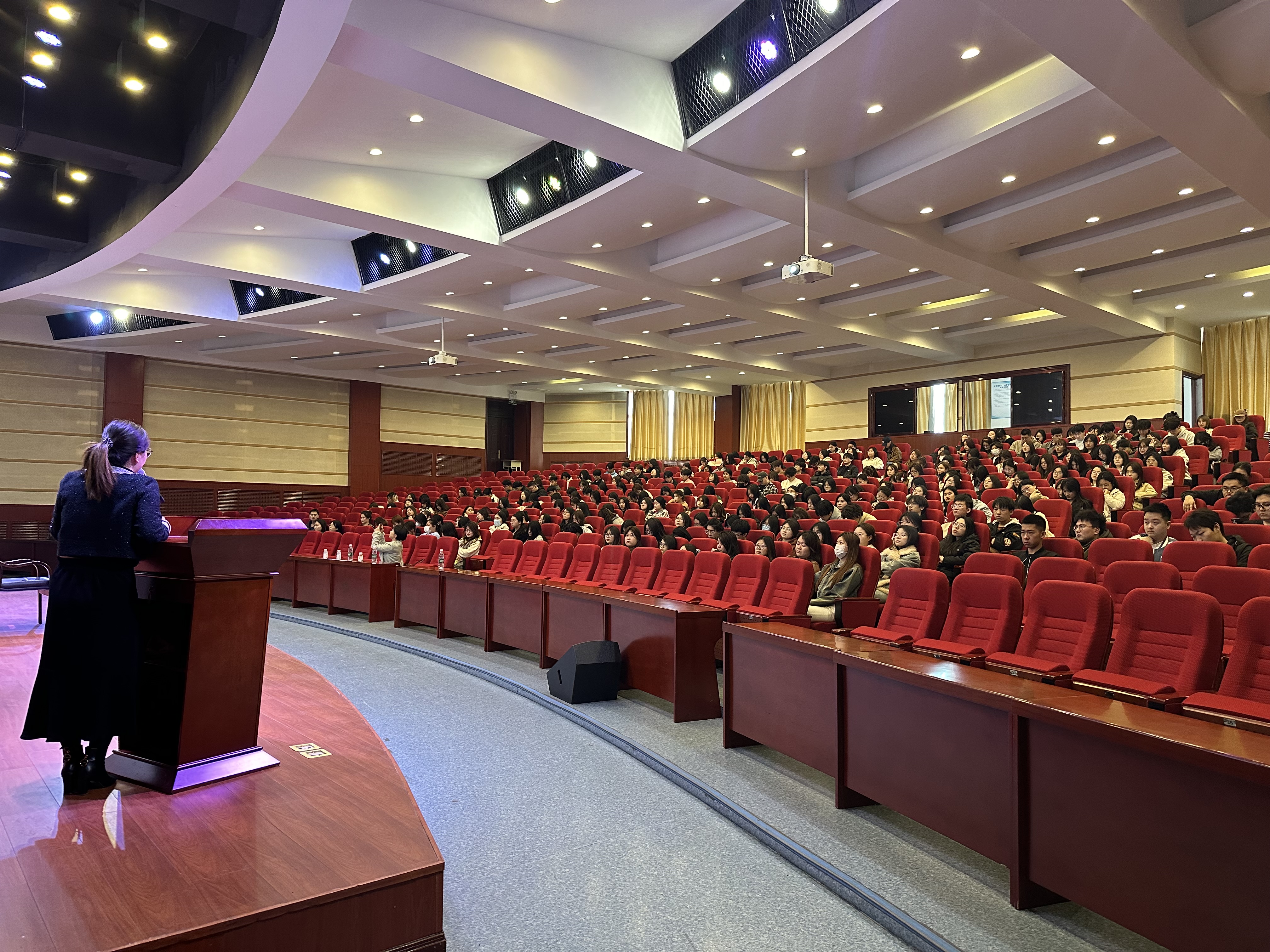宣讲会上,行韵教育负责人裴敬莹介绍了公司的发展历程、特色文化与成就,让同学们对公司有了初步认识。在企业文化分享环节,“互为土壤,共同成长,共同进步” 的理念令学生印象深刻。在岗位与职业发展介绍环节,裴敬莹详细讲解了岗位需求、用人标准和职业规划。针对学院英语、商务英语、日语等专业,公司提供了匹配度高的各类岗位。在互动交流环节,同学们积极提问,围绕专业对口、人才素质要求等表达关切。公司负责人耐心解答,介绍了为员工定制的培训学习机会,以及完善的晋升体系,为积极进取的员工提供上升通道。