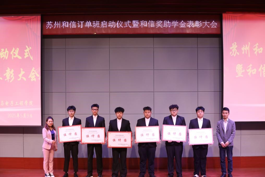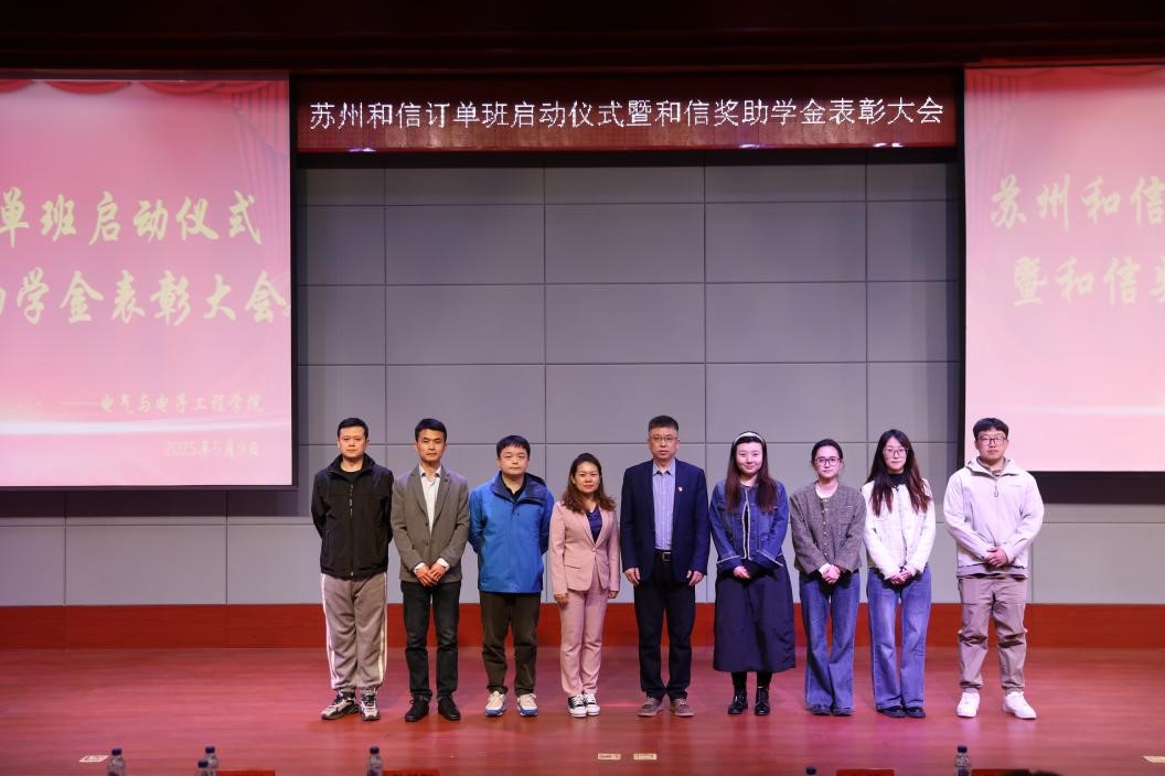 5月9日,电气与电子工程学院与苏州和信精密科技股份有限公司举办苏州和信订单班启动仪式暨和信奖助学金表彰大会,会议在学校学术报告厅举行。苏州和信精密科技股份有限公司人事经理陈广香、人事专员周坤元,电气与电子工程学院院长程钢、党总支书记陈思阳、2022级辅导员杨光、常丽以及全体2022级同学、部分2021级同学参加会议。