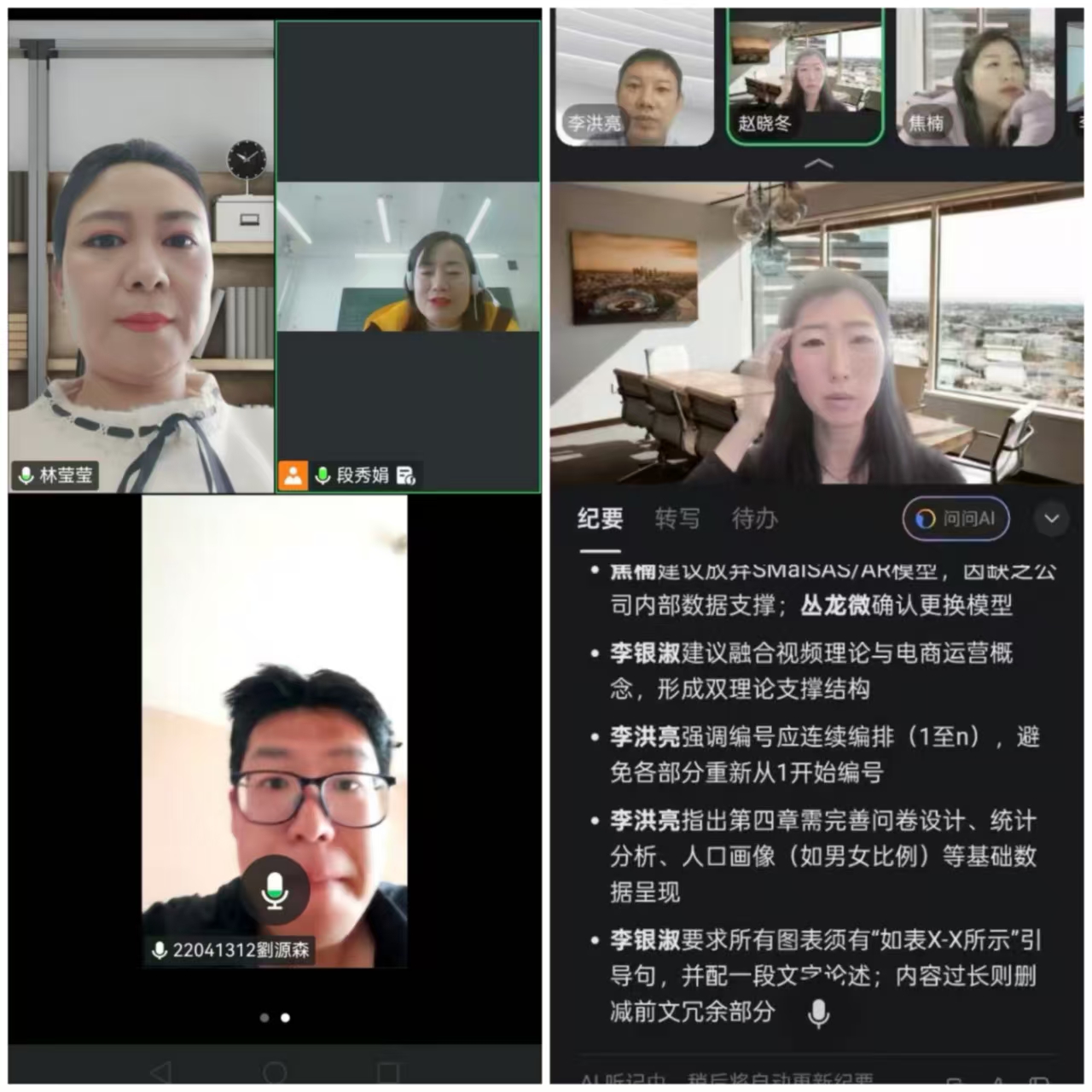 检查聚焦论文进度、核心内容、学术规范、导师指导等六大核心环节,针对商科各专业特性开展针对性审核。各检查小组采用“学生自查汇报+导师初审反馈+小组集中复审”方式,通过线上答辩、线上审核、一对一沟通结合的形式,为学生建立问题清单、制定整改方案,明确整改方向与时限。