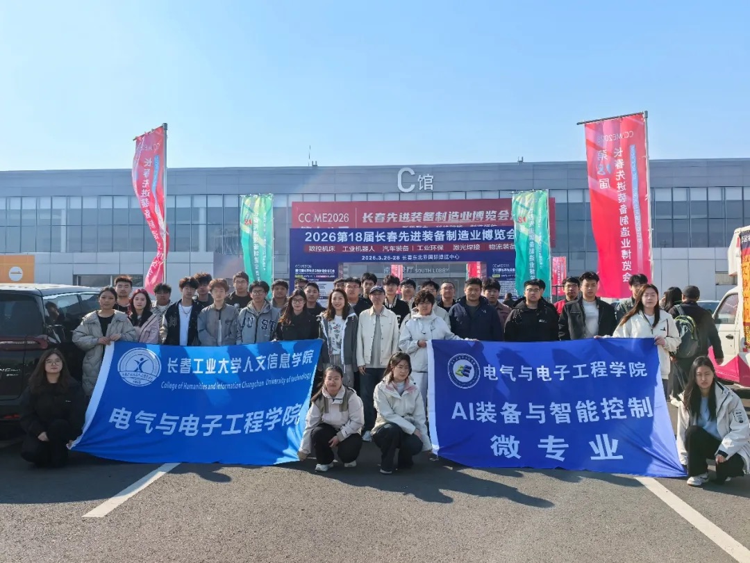 3月28日,电气与电子工程学院“AI装备与智能控制”微专业师生走进长春东北亚国际博览中心,参加以“智汇春城,链动未来”为主题的第十八届长春先进装备制造业博览会。本届展会汇聚国内外350余家顶尖制造企业,设八大展示板块,全方位呈现先进装备制造领域的前沿技术与产业成果。