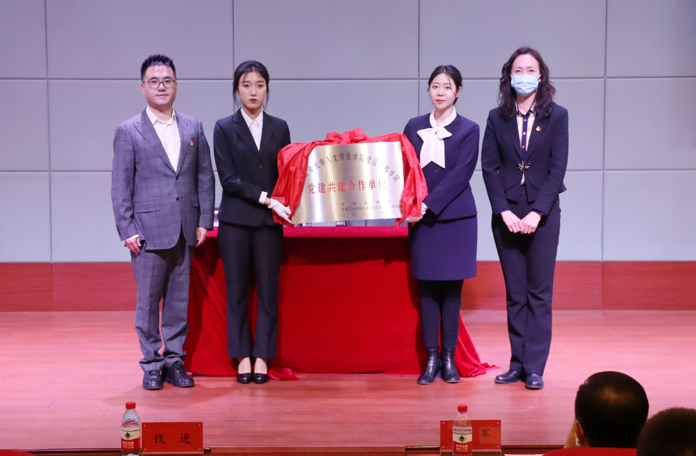 吉林省博物院副院长钱进与建设工程学院党总支书记徐辉共同完成“党建共建合作单位”揭牌仪式。