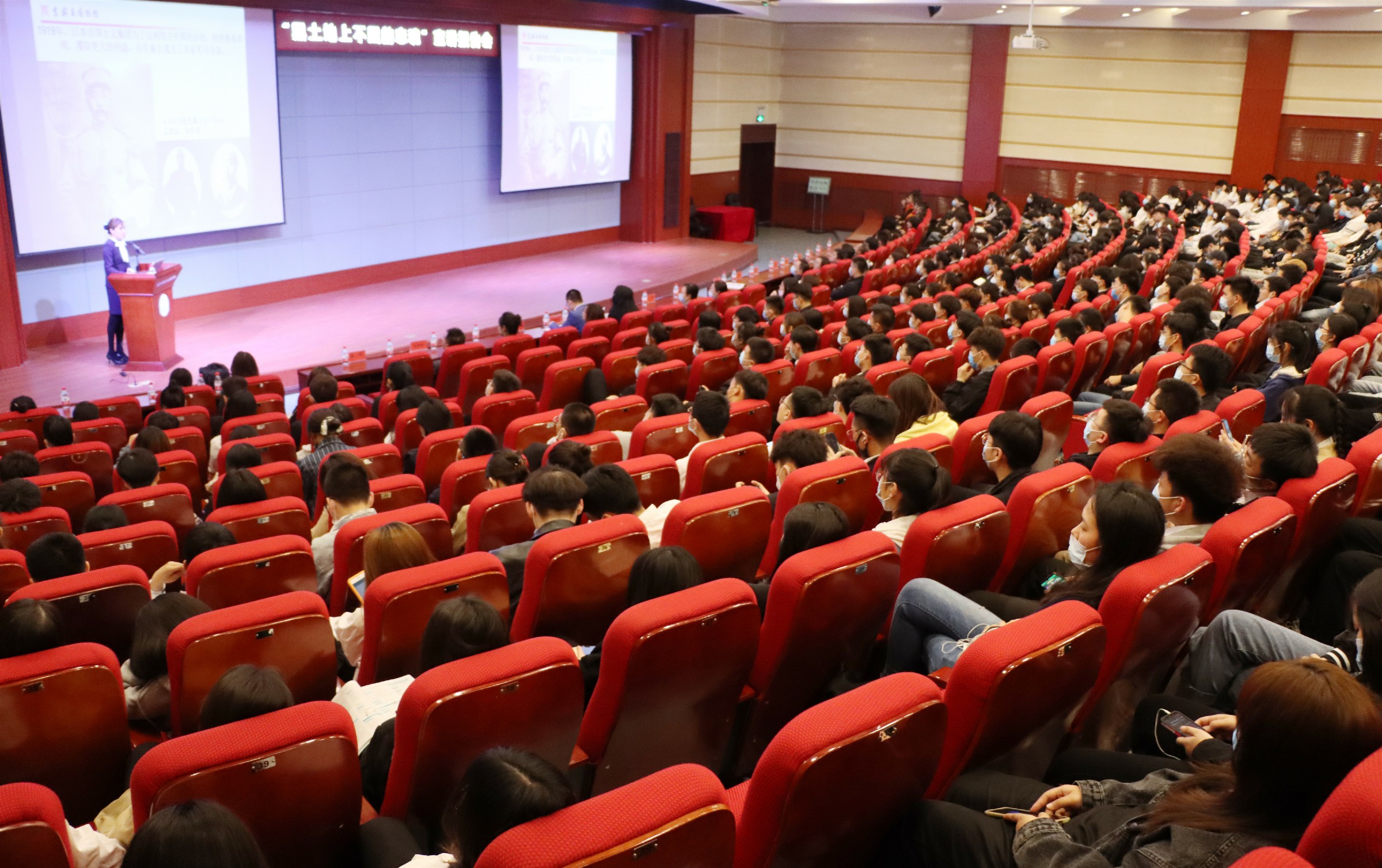 在报告中,崔玉卓同志深情地讲述了发生在东北这片土地上的感人故事:以日本侵华历史性生成与演变做为背景,从东北沦陷历史切入,分别从“奋起抗日,肩负民族救亡重任”;“配合抗战,烽火关东声威远扬”;“艰苦卓绝,挑战人类生存极限”;“舍生殉国,热血铸就英雄壮歌”四个方面展开。报告庄严肃穆,可歌可泣的历史瞬间和尘封许久的历史往事又演绎在了全体师生的眼前,仿佛又回到了那个战火纷飞的年代。