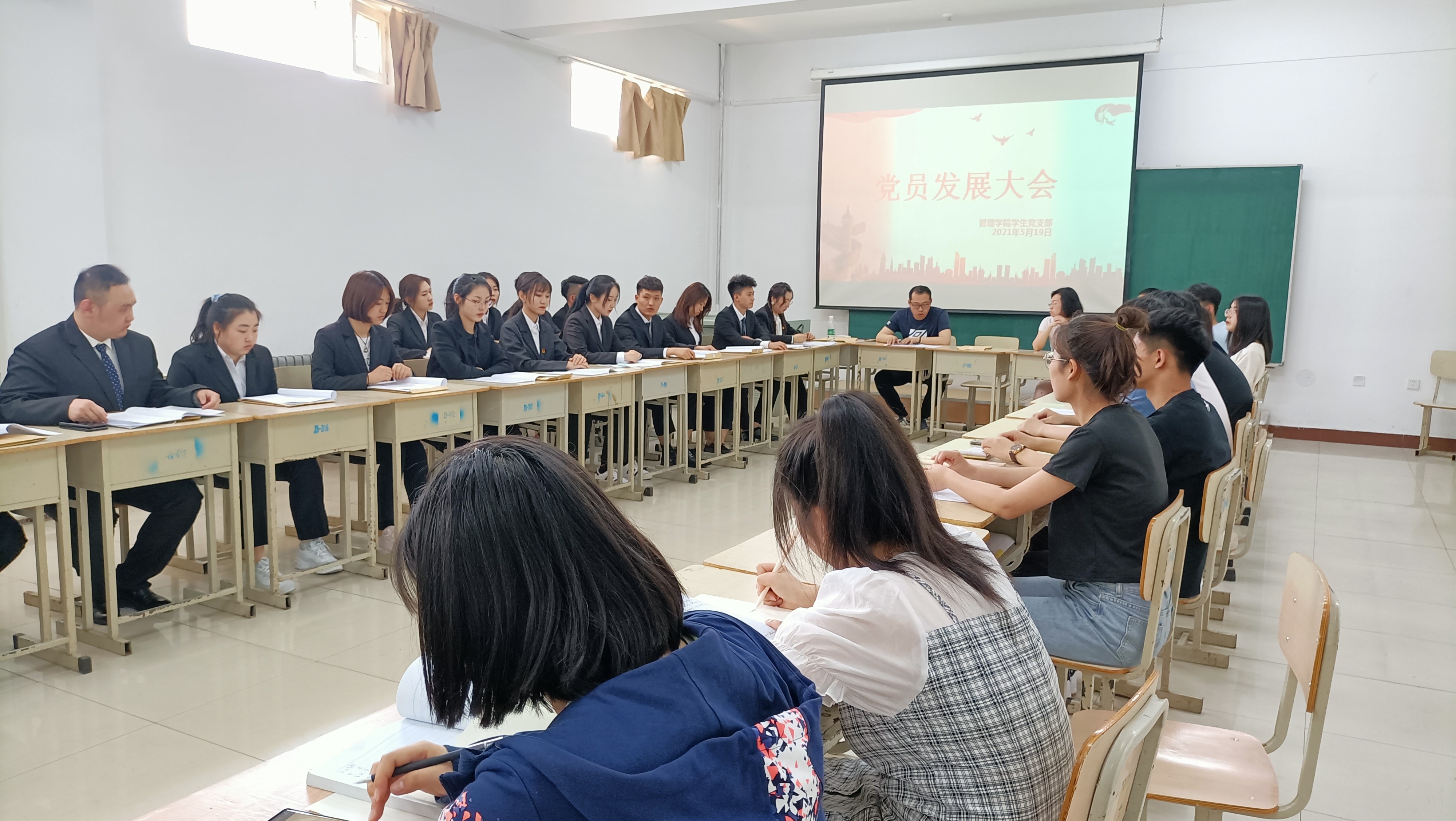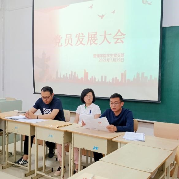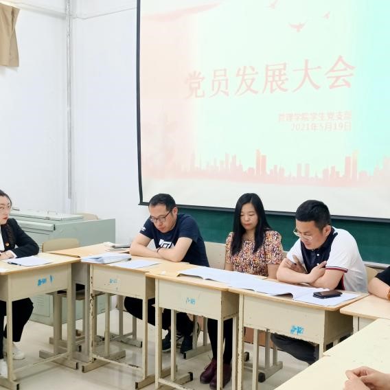 519日,管理学院学生党支部召开支部全体党员大会,讨论了李双双等十九名同学的入党问题。