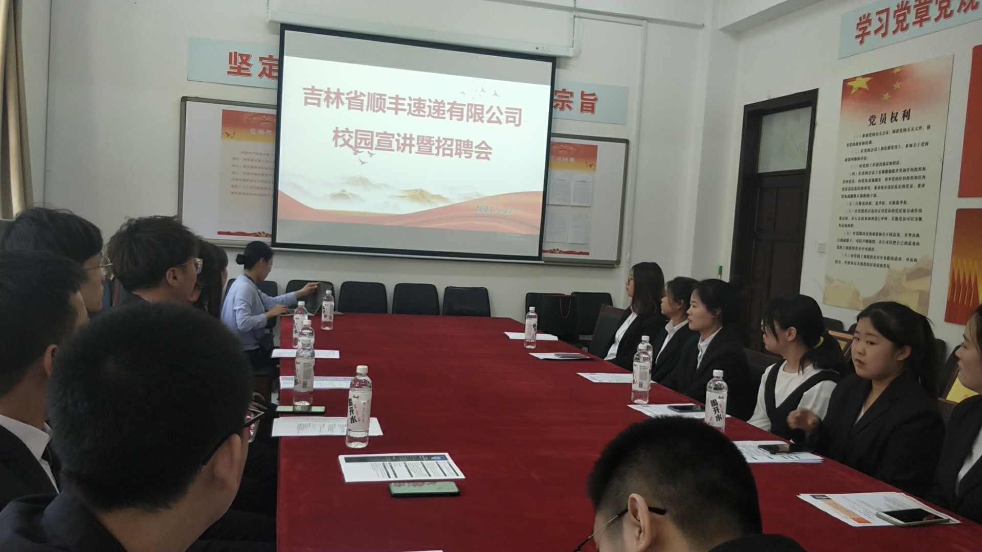 5月27日下午,吉林省顺丰速递有限公司应邀来我校召开专场招聘会。我校18级物流管理专业共有62名同学,此次共有17位同学报名参加了顺丰速递有限公司的宣讲会,经过企业的严格考核、面试,共有9位同学被成功录用,他们将在完成本学期课程后进入企业相关岗位开始专业综合实习。