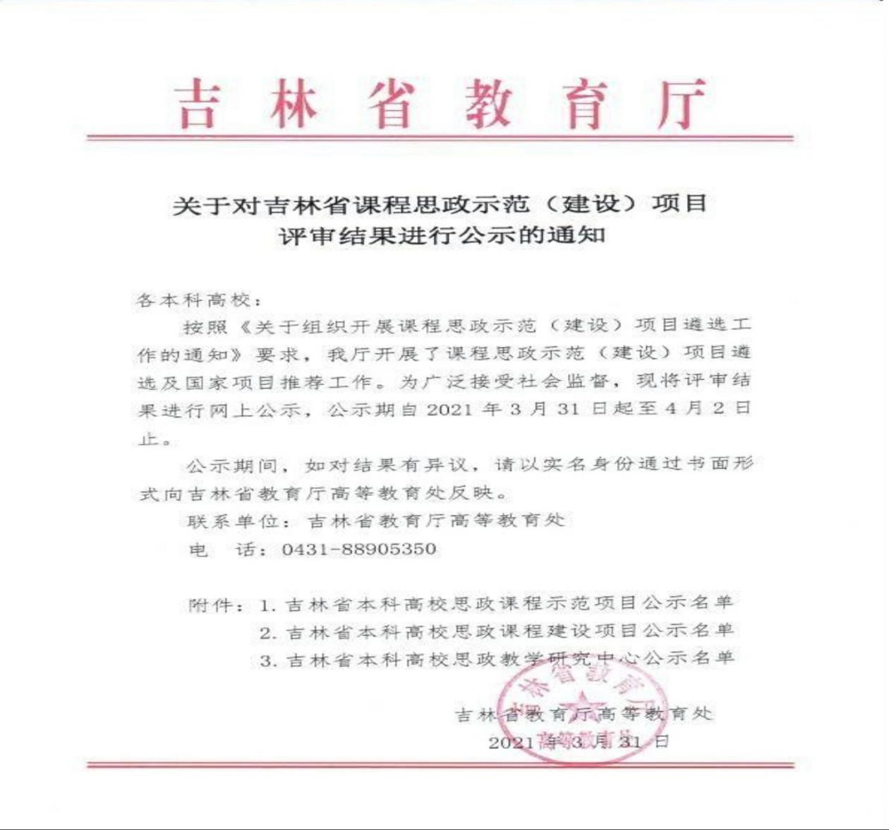 获评吉林省课程思政建设项目、吉林省课程思政教学团队