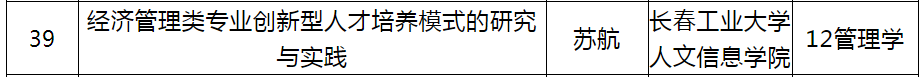 近日,根据《关于公布第九届高等教育教学成果奖培育项目名单的通知》(吉教高〔2021〕26号),我校由商学院院长苏航教授担任负责人申报的“经济管理类专业创新型人才培养模式的研究与实践”项目,成功获批吉林省第九届高等教育教学成果奖培育项目。