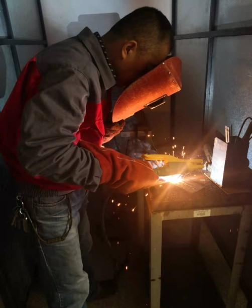 为深入贯彻落实省委党史学习教育领导小组《关于充分发挥基层党组织战斗堡垒作用和党员先锋模范作用 进一步深化党史学习教育“我为群众办实事”实践活动的通知》要求,结合学校党委2021年11月份主题党日活动安排,工程训练中心直属党支部积极开展 “我为师生办实事活动”,不断提升为师生办实事的质量水平与成效。深入调研师生的急、难、愁、盼事情。11月8日长春迎来入冬以来的第一场大雪并夹杂着冬雨,校园的路面变得非常光滑,尤其是阳光无法照射到的部分路面上的冰是很难除去的。党支部书记毛志阳同志得知此情况后,在职工大会上公布此事后,林军老师积极主动的承担了该项任务,这段时间工程训练中心教学任务繁重,几乎天天有课,林军老师只能利用中午时间制作,他利用废旧的带锯条高速钢材料,具有一定硬度和耐磨性,又从后勤处维修科找到一些边角辅料,通过切割、整形、焊接、打磨、喷漆及安装等工序,于11月10日率先制作出2把雪铲,交付后勤处校园科试用,经过校园室外保洁员使用,一致反映除冰效果很好。