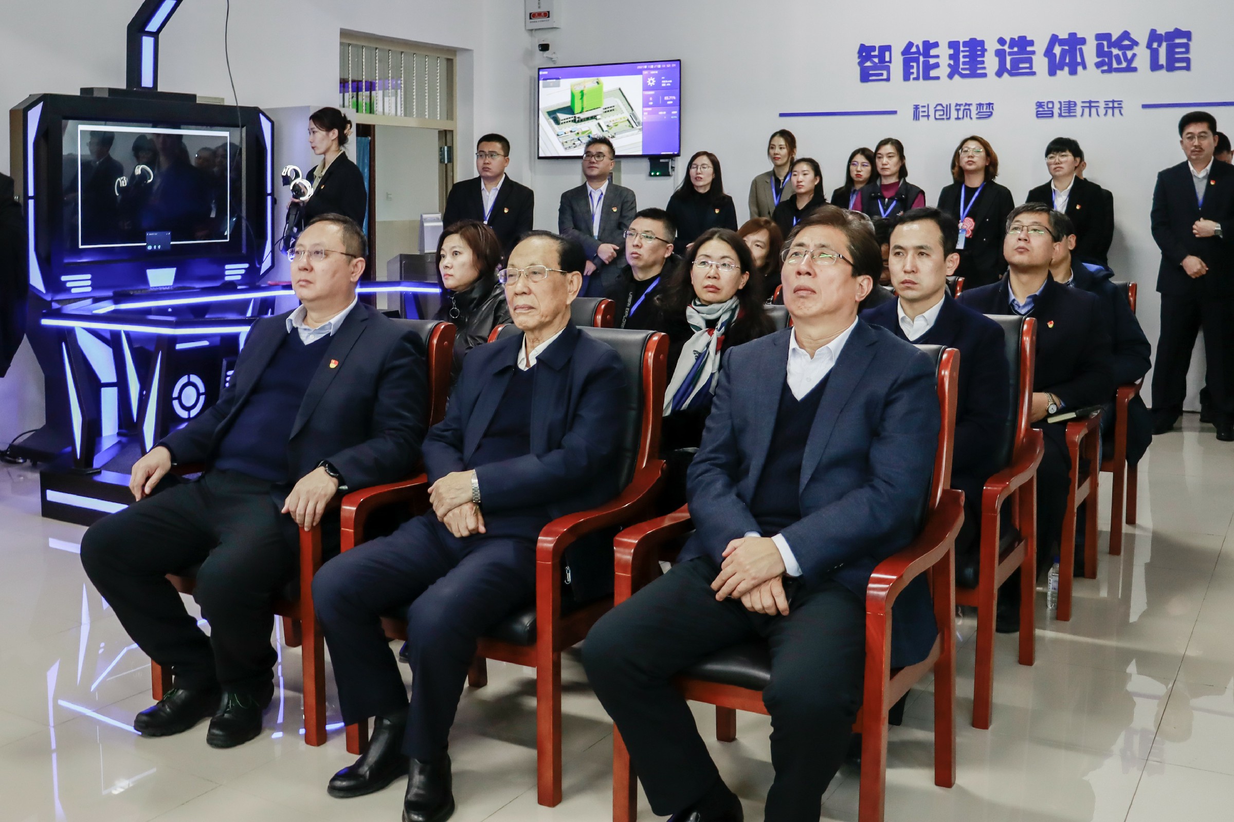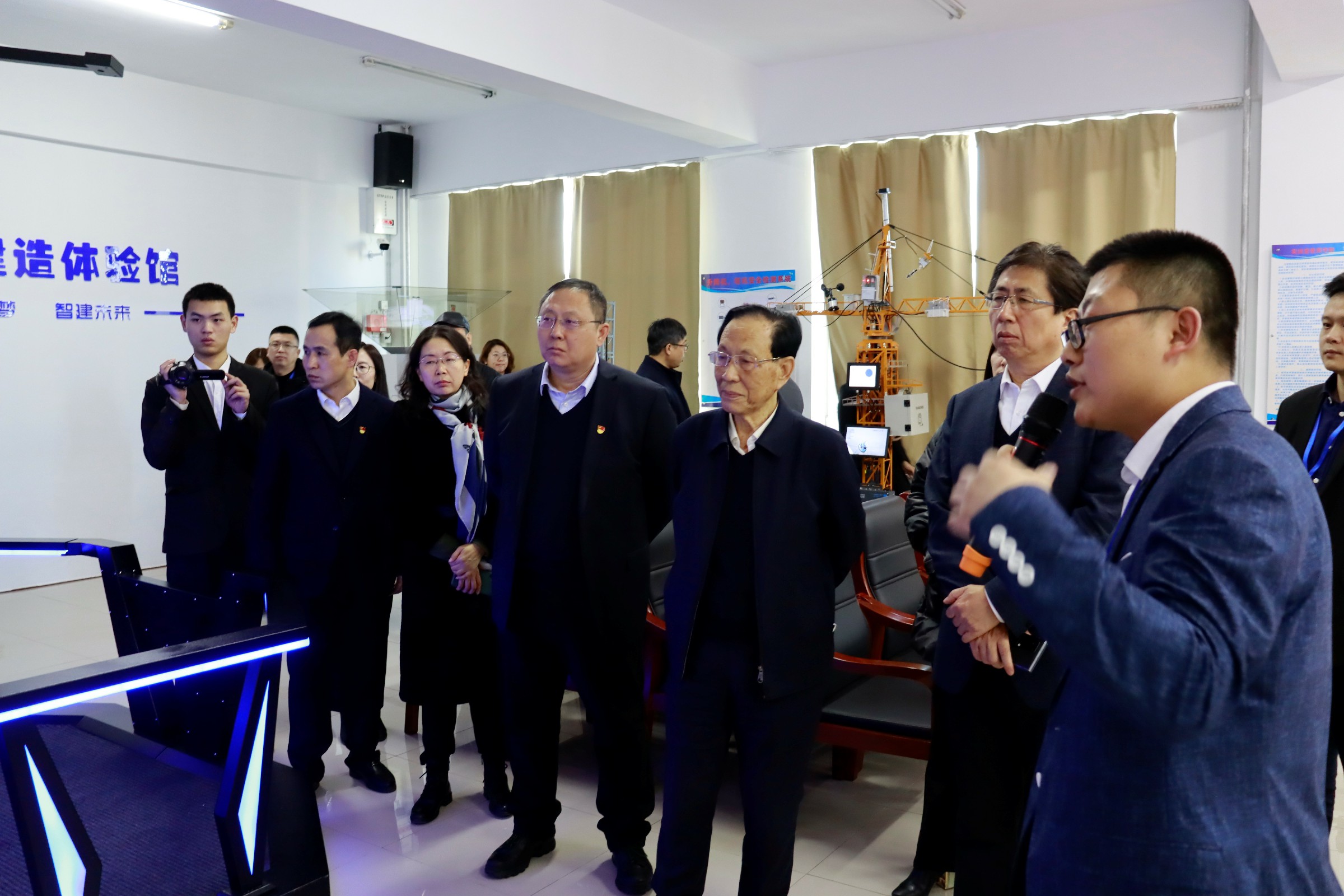 建设工程学院实验室主任徐艳召汇报展示了智能建造体验馆各模块的功能特色,涵盖智慧工地虚实一体化平台、无人机智能测绘、大型智能机械操作、安全教育体验考核平台等,并邀请各位领导操作体验。