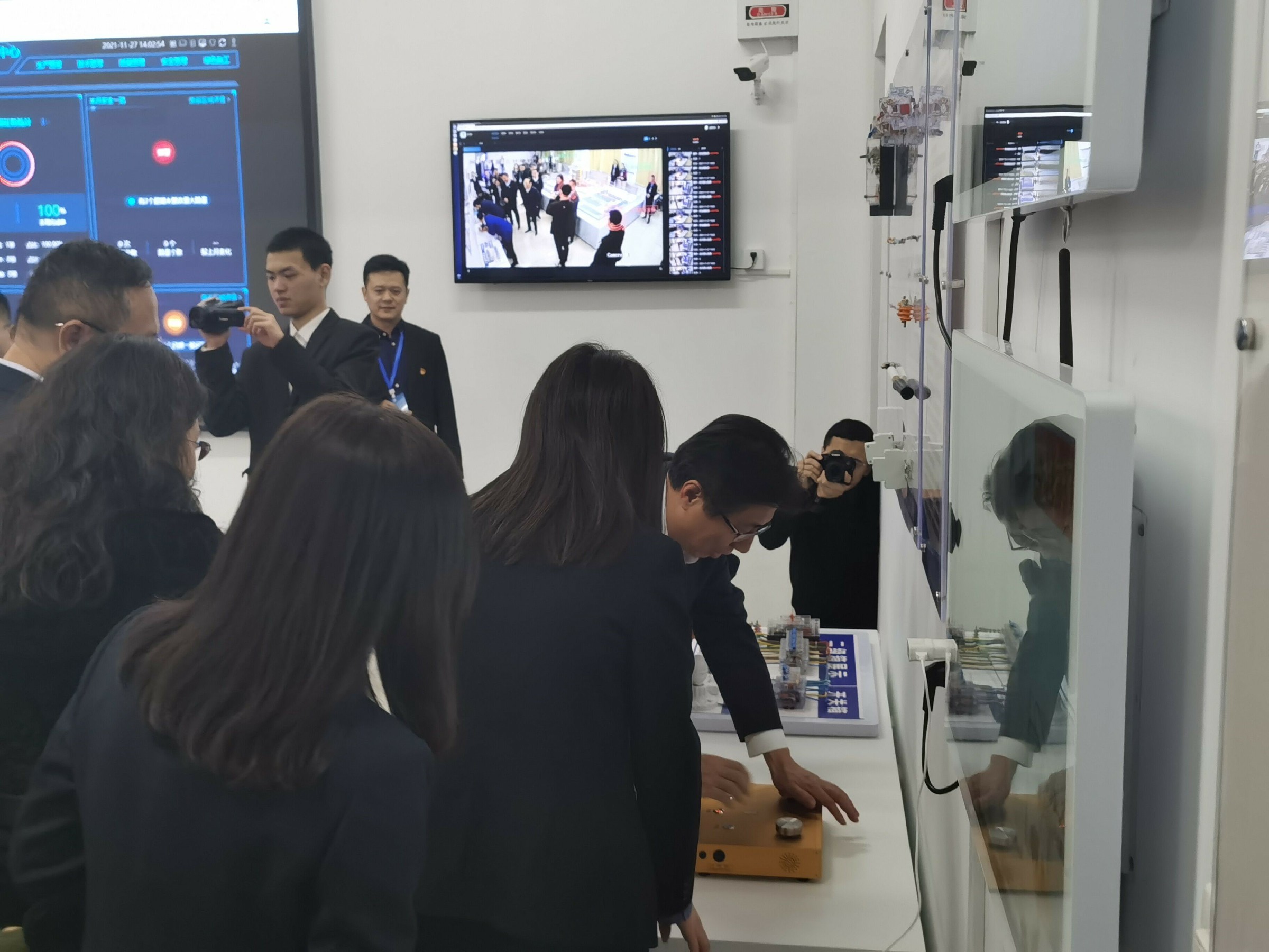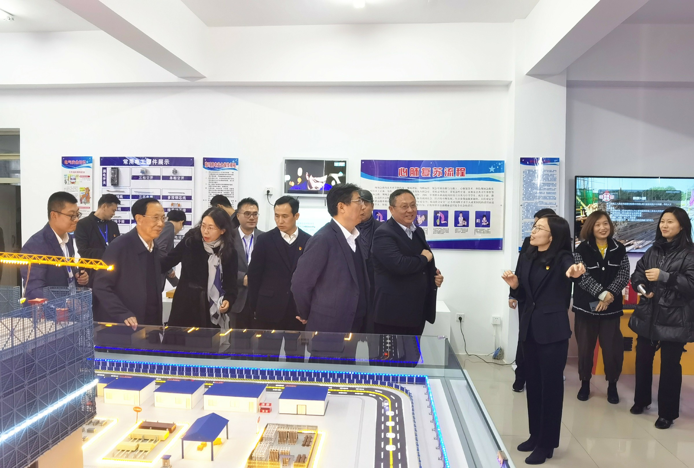 建设工程学院院长孙娜汇报了智慧建造综合实训室的功能特色。空间布局上,打造“五区一馆”,协同联动;特色定位上,集教、学、练、考、评于一体,集体验式、沉浸式、互动式于一体,集趣味性、开放性、先进性于一体;建设目标上,在促进传统专业转型升级、新工科专业健康发展的同时,逐步增强校内实践基地社会服务功能,持续深化校企合作、产教融合。