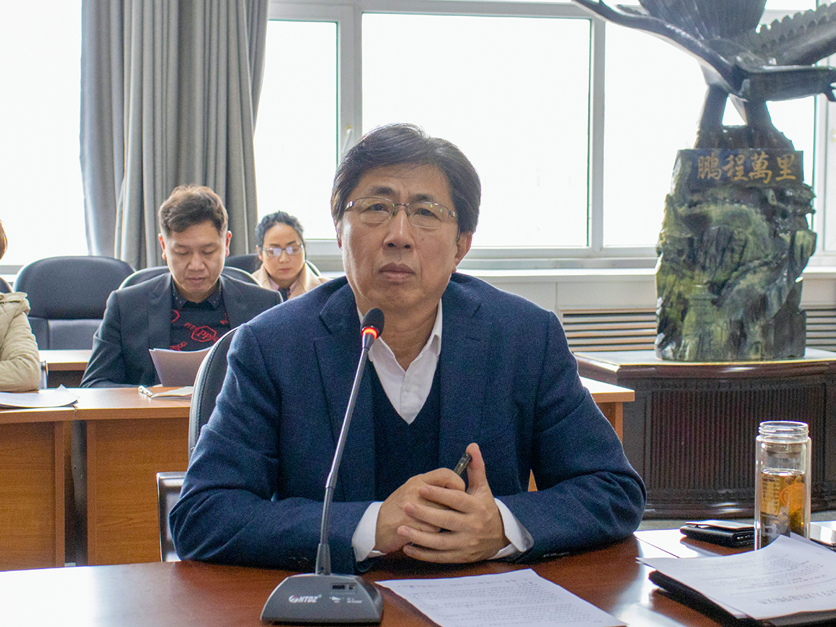 校长潘福林主持会议,各部门负责人参会。