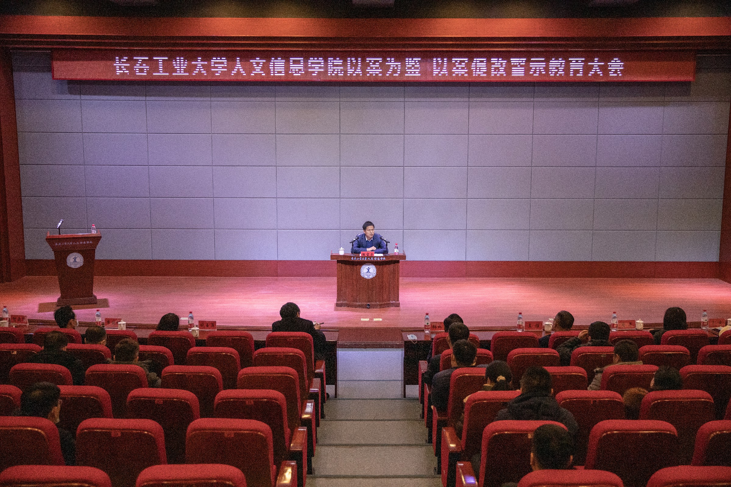 为深入贯彻习近平总书记关于全面从严治党重要论述,持续深化以案示警、以案促改、以案促治,扎实推进我校党风廉政建设和反腐败斗争,坚定不移推动全面从严治党向纵深发展,12月8日,学校在学术报告厅召开以案为鉴、以案促改警示教育大会。长春市纪委监委党风政风监督室副主任邹宝力同志,学校创建人、董事长张兆华,校长潘福林,党委书记、督导专员王煊,以及学校其他领导班子成员,科级及以上干部,党支部书记近160人参加会议。学校纪委书记张哲人主持会议。