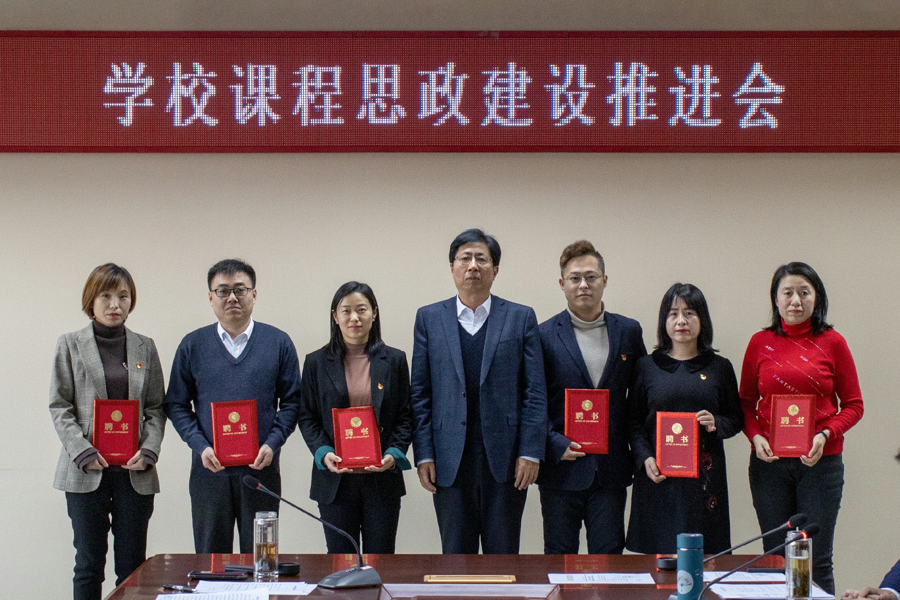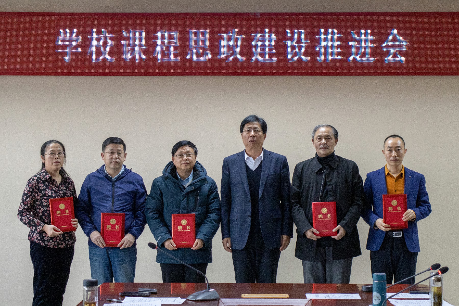 校长潘福林、党委书记王煊为课程思政教学研究中心成员颁发聘书,并合影留念。