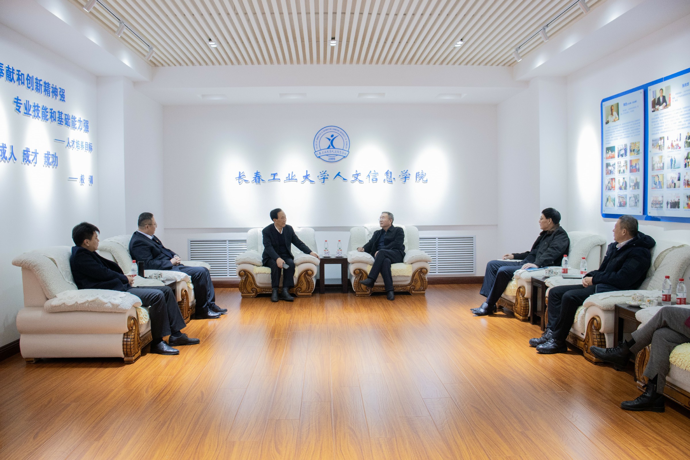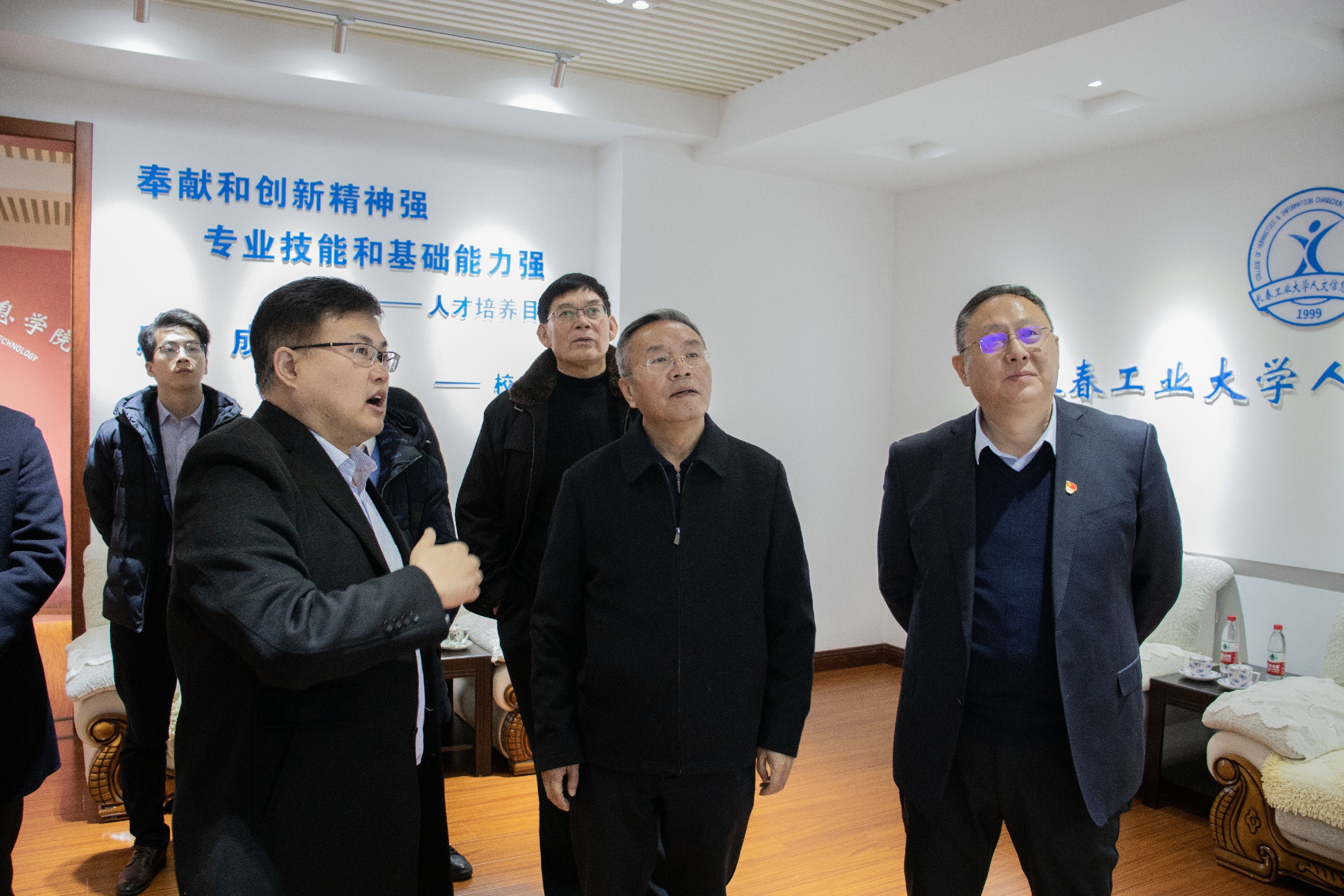 2021年12月16日上午,吉林大学原党委副书记,现吉林省创新人才研究会会长、吉林大学莱姆顿学院院长韩晓峰一行莅临我校调研交流创新人才培养和创新创业教育工作。学校创建人、董事长张兆华,党委书记王煊,副校长臧玉萍,校长助理兼党委组织部部长贺同华,校长助理兼招生就业处处长王爽,党委宣传部部长王春玲陪同调研。