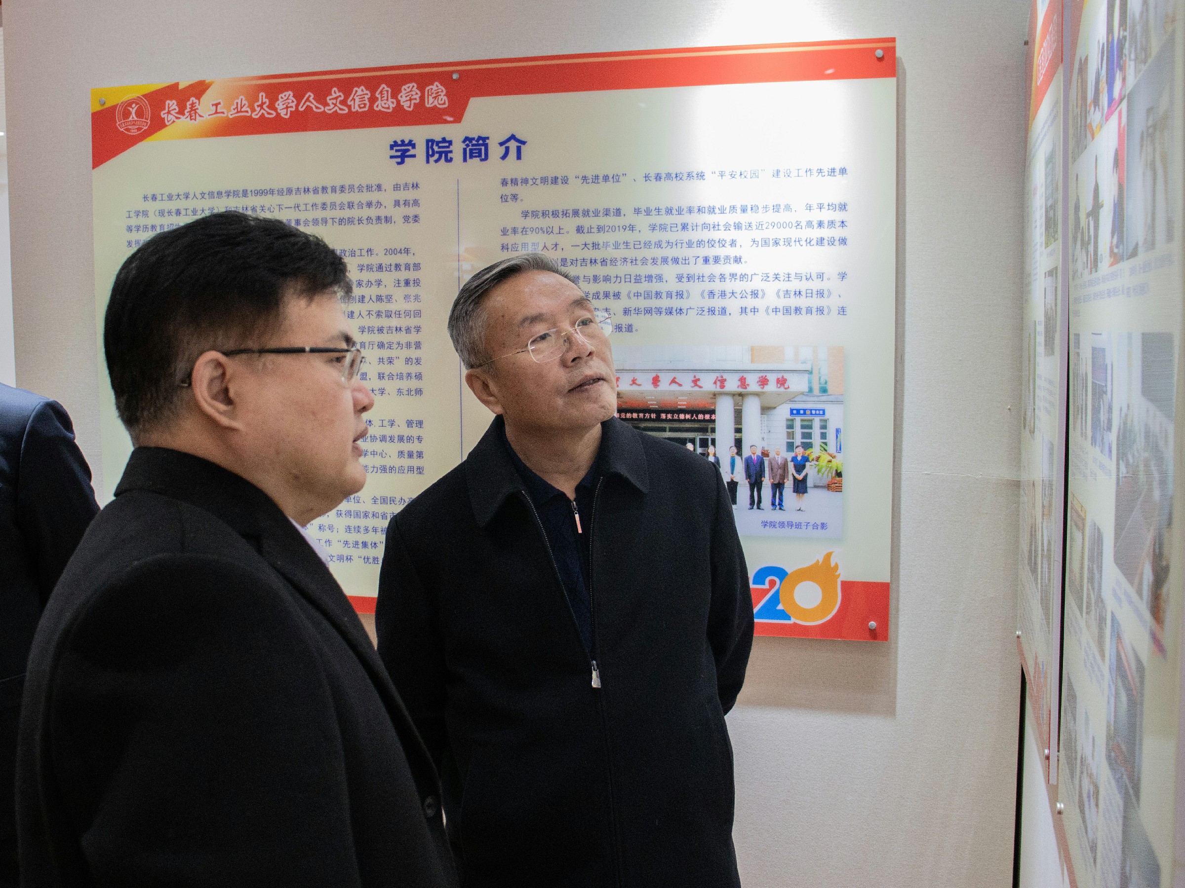 韩晓峰一行在学校领导的陪同下,参观了校史馆,详细了解了学校二十多年来的办学历程,对三位创建人的创业精神、奋斗精神、无私奉献精神十分敬佩,对学校办学成果给予高度评价。