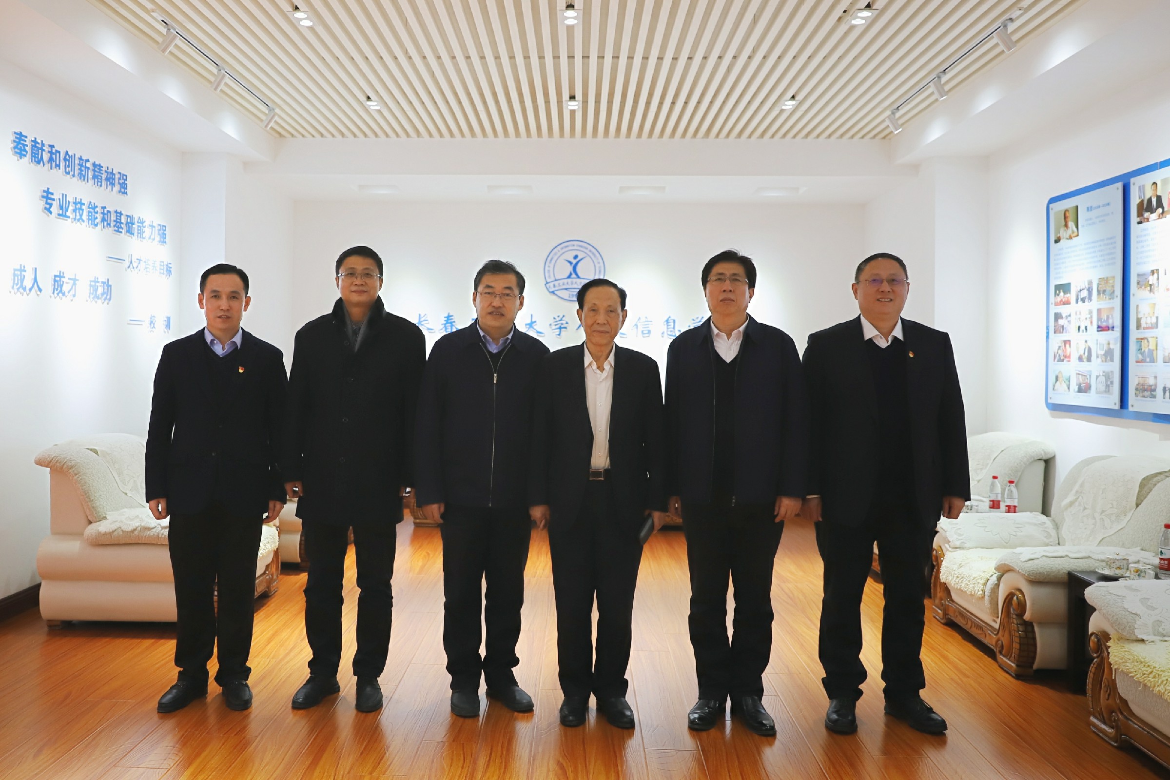 12月24日下午,长春工业大学校长张明耀,副校长郭世强到我校调研。学校董事长张兆华,校长潘福林,党委书记王煊,副校长李晓科参加了调研。
