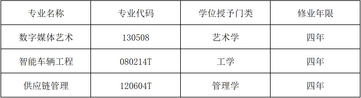 近日,教育部下发《关于公布2021年度普通高等学校本科专业备案和审批结果的通知》(教高函〔2021〕14号),我校申报的三个专业:数字媒体艺术(艺术学、专业代码:130508)、智能车辆工程(工学、专业代码:080214T)、供应链管理(管理学,专业代码:120604T)全部获批。至此,学校本科专业达43个,包括文学、法学、工学、管理学、经济学、艺术学6大学科门类。