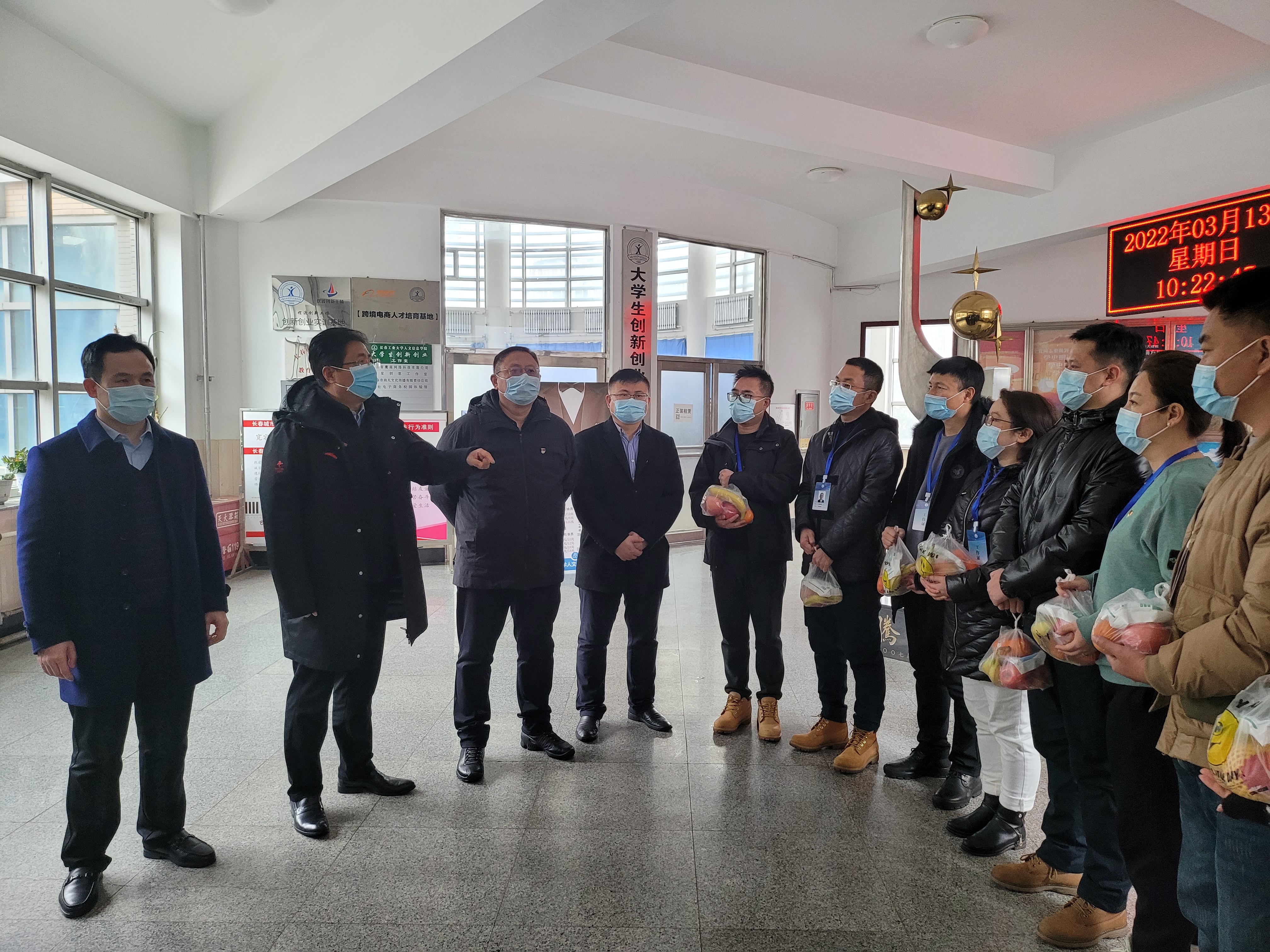 3月12日、13日,校长潘福林,党委书记王煊,副校长李晓科,校长助理兼党委组织部部长贺同华等校领导带队,代表董事长,代表学校看望慰问疫情防控一线教职工。