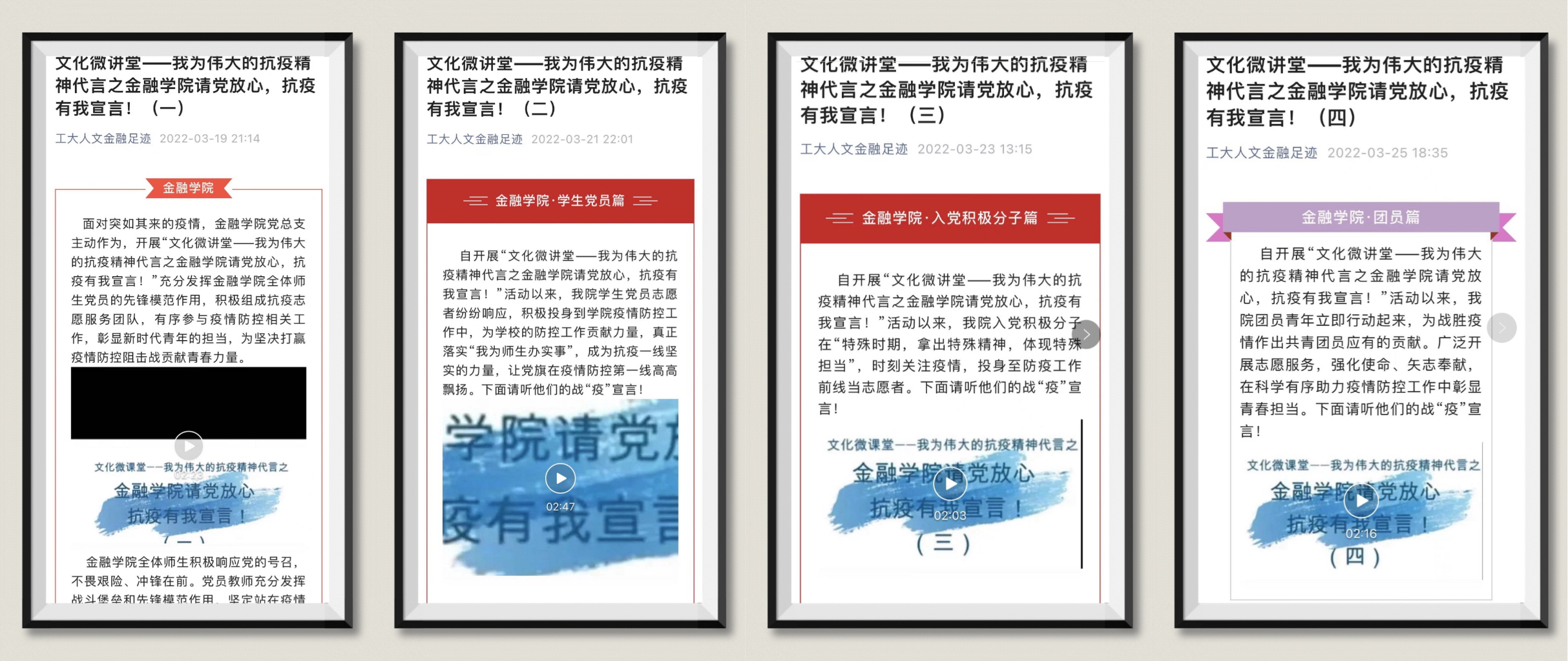 金融学院开展“文化微讲堂——我为伟大的抗疫精神代言之请党放心,抗疫有我宣言!”活动,他们亮身份、显担当,铮铮誓言落地有声。他们用爱与担当,筑起了一道道疫情“防火墙”,微光如炬,战“疫”必胜。
