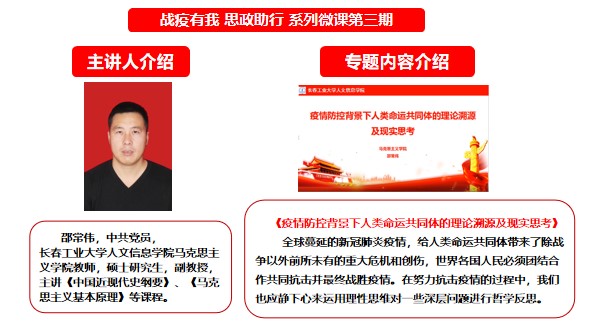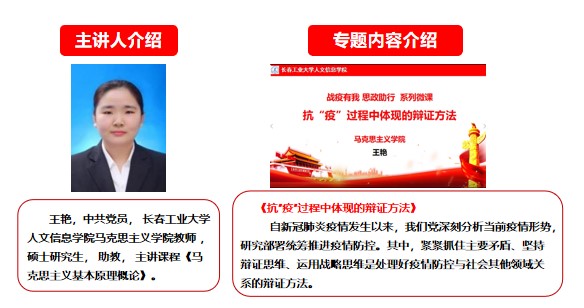长春工业大学人文信息学院马克思主义学院“战‘疫’有我 思政助行”系列微课第三期开讲啦!