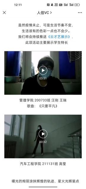 团学活动内容丰富。为更好地丰富疫情下的校园生活,减少因疫情带来的心理焦虑,校团委号召团学组织和社团依托各自组织特色,推出“暖心活动”,为青年搭建释放压力、充实生活的平台。推出云才艺展示、云健身、云分享等各类活动,面向13个学院征集并发布云才艺展示,线上运动打卡,校园线上配音秀等形式多样的青春作品168件,发布公众号推文72期。同时,制作了“带你解锁不一样的封校生活”“爸爸妈妈请放心,我在学校挺好的”等暖心推文,总阅读量达17029人次;制作了“疫情之下我不怕,因为辅导员和我们在一起”公众号推文9期,学生们借此表达了疫情之下特殊时期对在校教师舍小家为大家的深深敬意和感恩之情;同时开通广播站线上点歌,在“人信青年”抖音账号发布《致敬抗疫一线勇者》《送你一朵小红花》《病毒走开》等原创视频作品十余件。营造了校内外、立体式的疫情防控宣传氛围,为坚决打赢疫情防控战疫,筑牢科学依法防疫意识,凝聚抗击疫情的青春力量,彰显了青春担当。