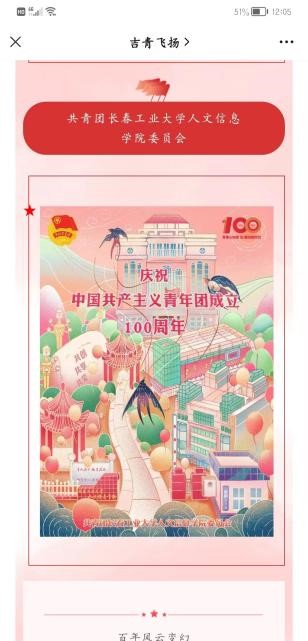 我校师生收看庆祝中国共青团成立100周年大会盛况被省教育厅宣传处、共青团吉林省委宣传报道,我校学生制作的庆祝建团百年的海报,原创青春视频《致时代 致青春》也被团省委专题报道。