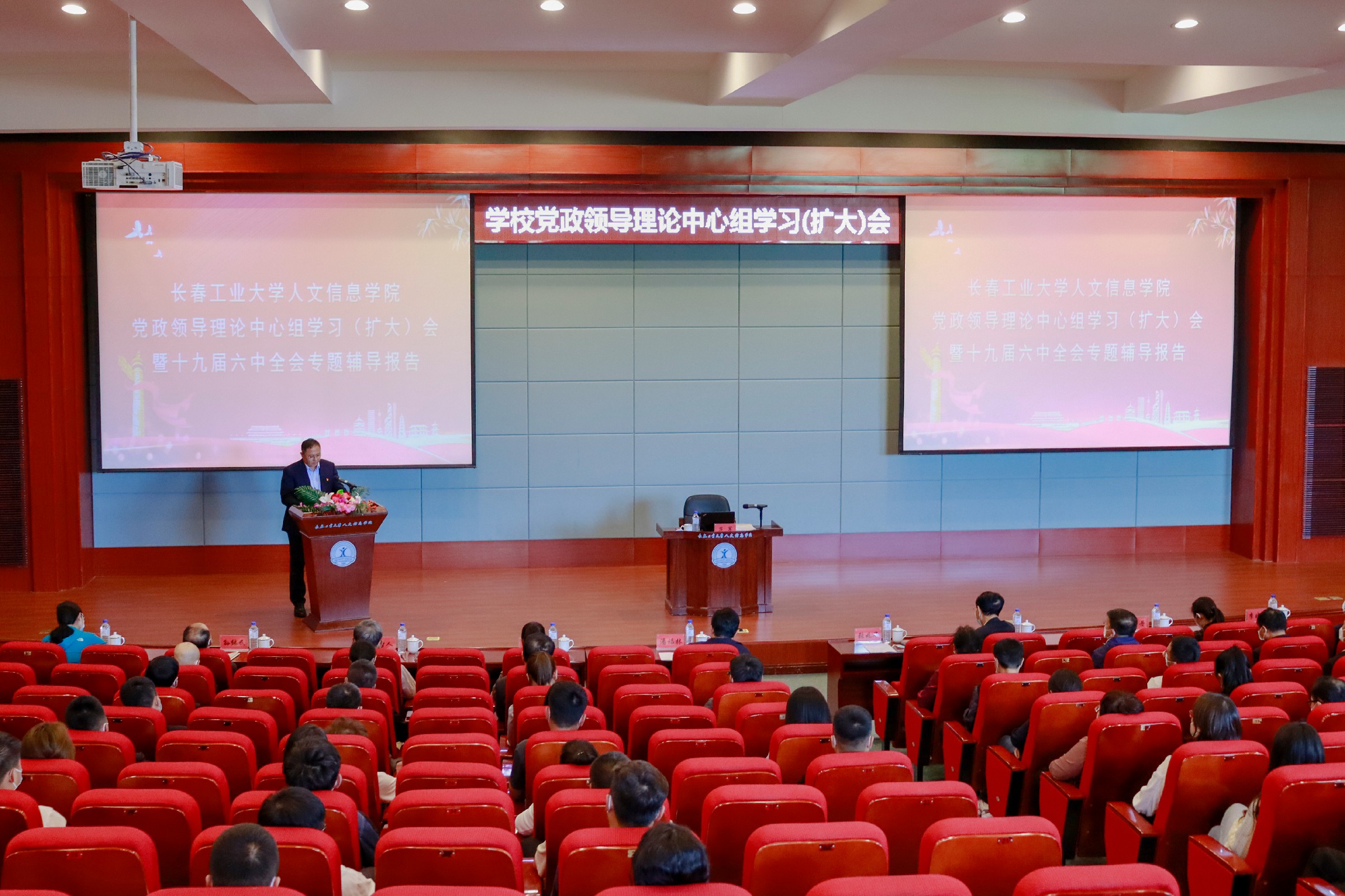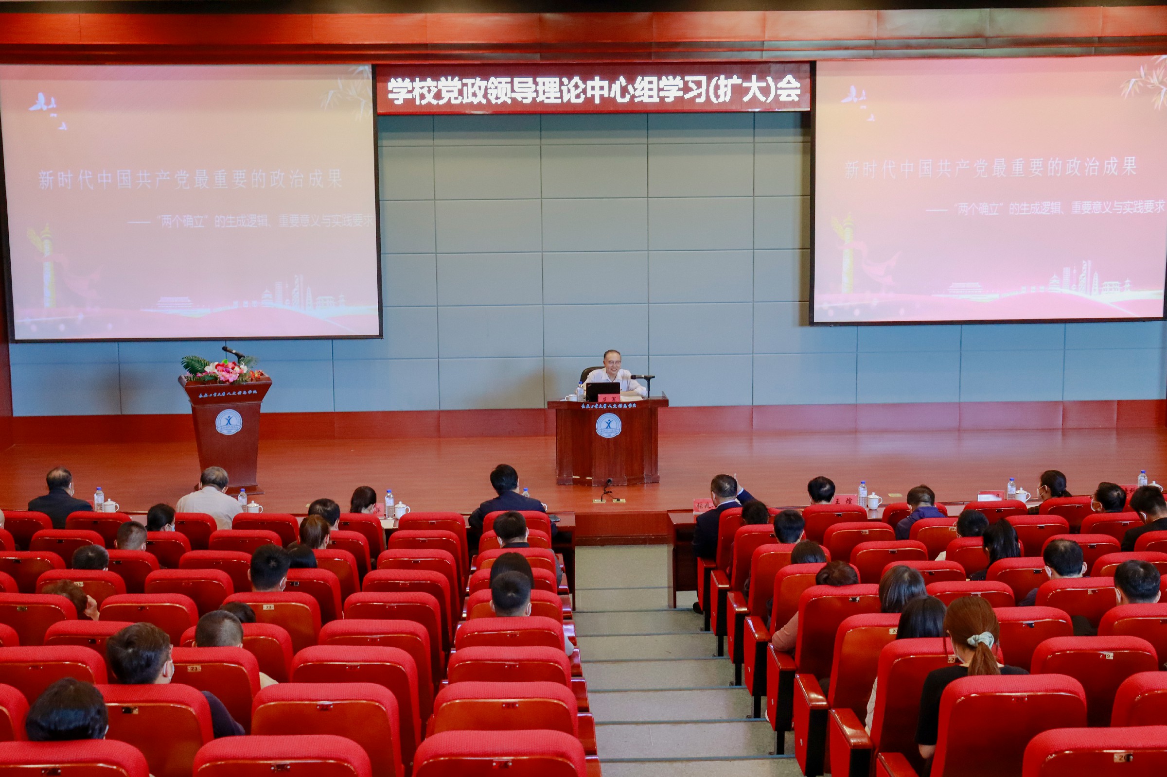 6月8日,学校召开党政领导理论中心组学习(扩大)会暨十九届六中全会专题辅导报告。董事长张兆华,校长潘福林,党委书记王煊等学校领导班子成员出席,学校党委委员,全校教职员工参会。报告由党委书记王煊主持。
