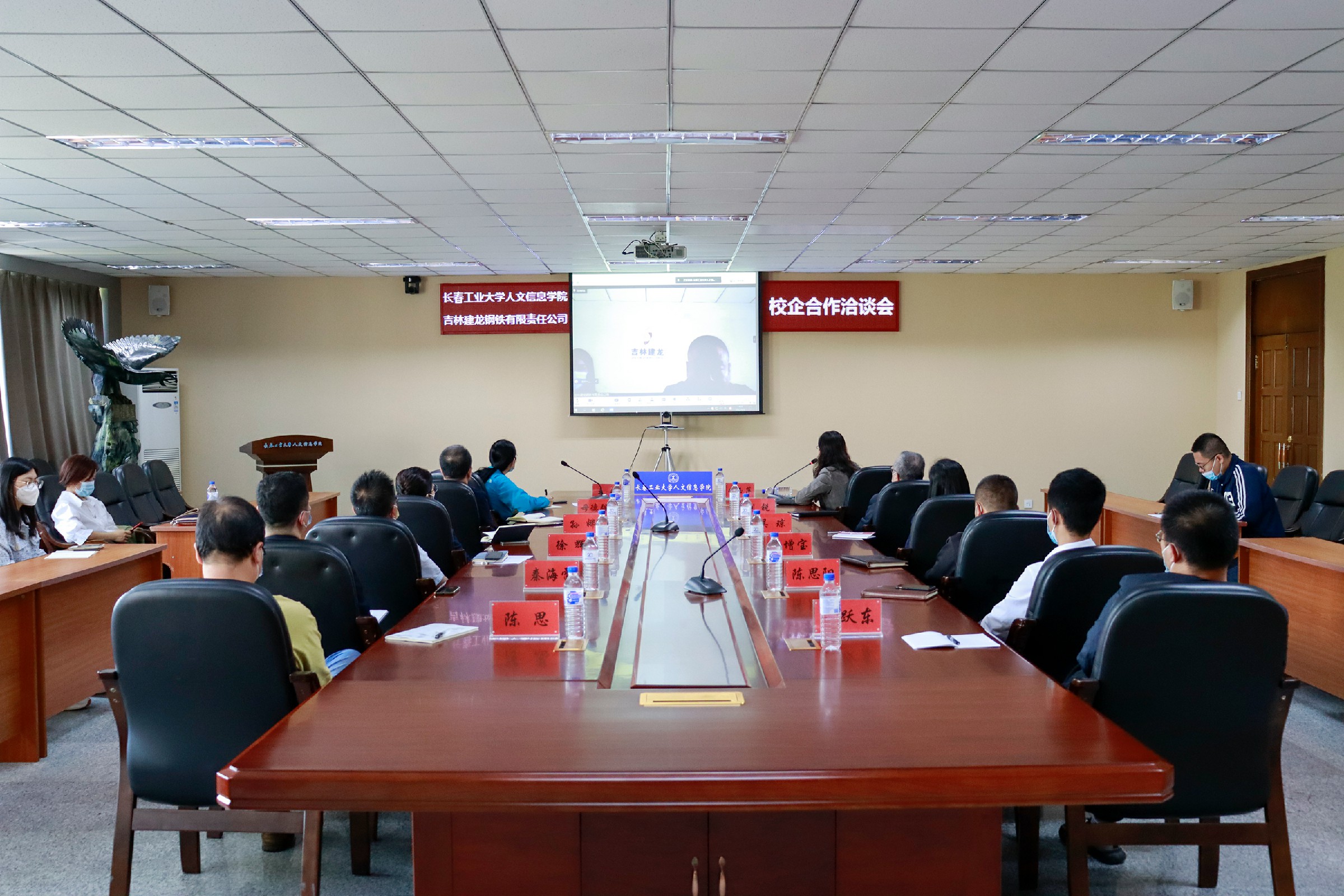 2022年6月9日下午,我校与吉林建龙钢铁有限责任公司在校部三楼会议室通过视频会议方式举办校企合作洽谈会。吉林建龙钢铁有限责任公司人事行政处副处长张继武,人事行政处主任刘璐,人事行政处管理师郝艳华,轧钢厂综合室主任刘鹏宇,学生代表李一凡参会。副校长兼教务处处长臧玉萍,校长助理兼招生就业处处长王爽,机电工程学院,自动化学院,信息工程学院,建设工程学院,汽车工程学院的院长、党总支书记、辅导员、教学秘书出席会议,会议由副校长臧玉萍主持。