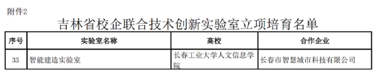 为贯彻落实党中央、国务院关于国家中长期科学和技术发展的决策部署,加快实施高校科学技术“十四五”和中长期发展规划、聚合高校人才资源和科技创新发展要素,推动高校与企业强化创新合作,促进创新链产业链深度融合,近日,吉林省教育厅开展了2022年度吉林省校企联合技术创新实验室遴选申报工作,全省共立项建设校企联合技术创新实验室50个,立项培育校企联合技术创新实验室35个。我校建设工程学院孙娜院长牵头申报的智能建造实验室获批吉林省校企联合技术创新实验室立项培育项目。