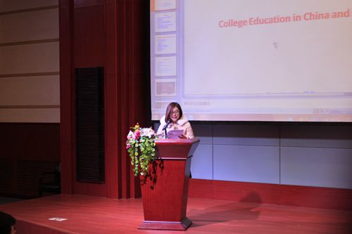 会后,刘凤山教授在学校学术报告厅为我校学生做“中美教育文化对比”讲座。刘凤山教授担任美国特拉华州立大学助理副校长,主管国际事务,兼应用数学中心主任,从事教育事业多年,具有丰富的教育教学经验,特别是在中美文化教育对比方面有较为深入的研究。刘凤山教授的精彩讲座,让同学们对美国的教育文化和教育理念以及对特拉华州立大学的基本情况有了初步的了解,同时给有留学意愿的同学提出了许多中肯的建议。