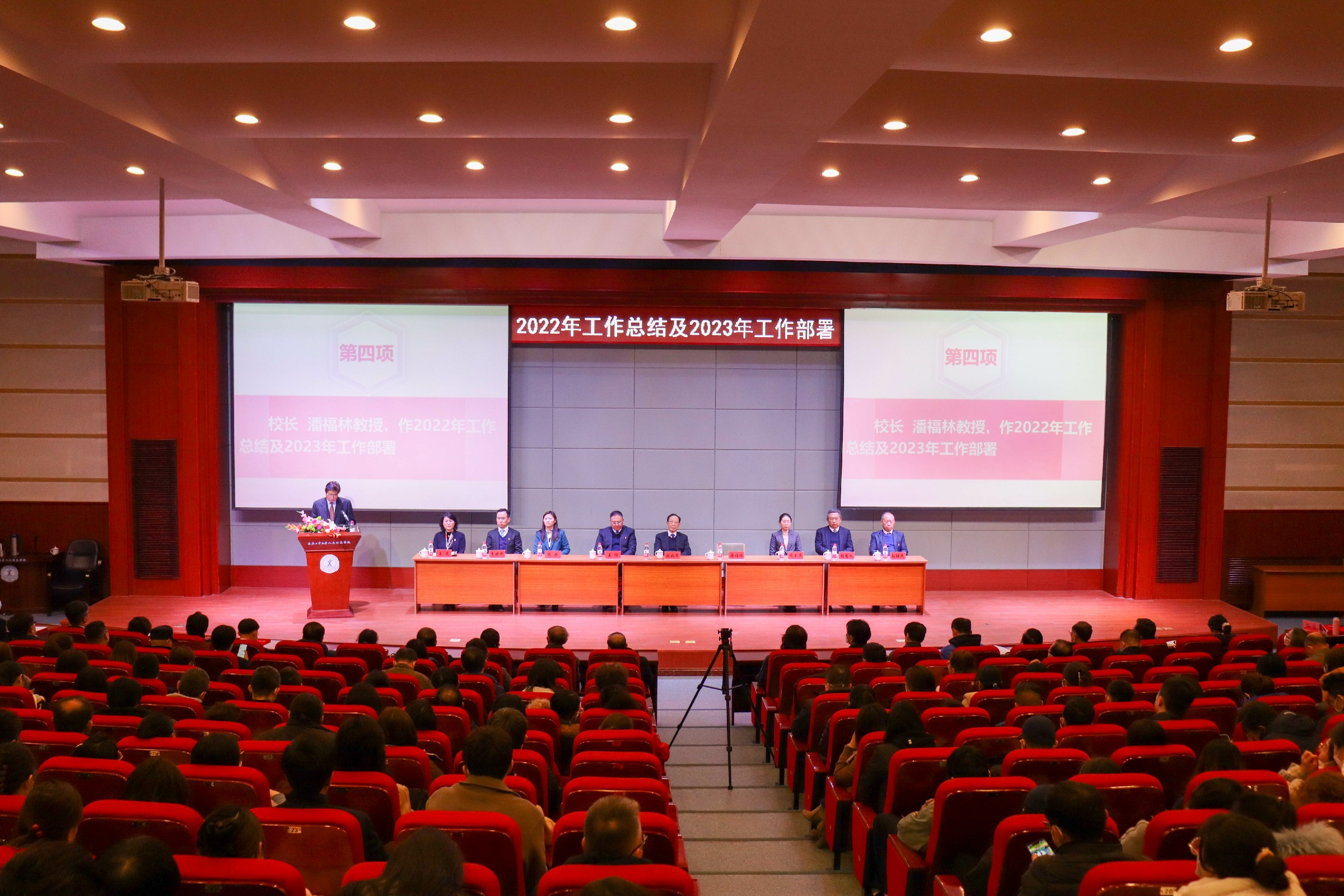 会上,校长潘福林总结回顾了学校2022年的工作成果,全面部署了2023年的重点工作。