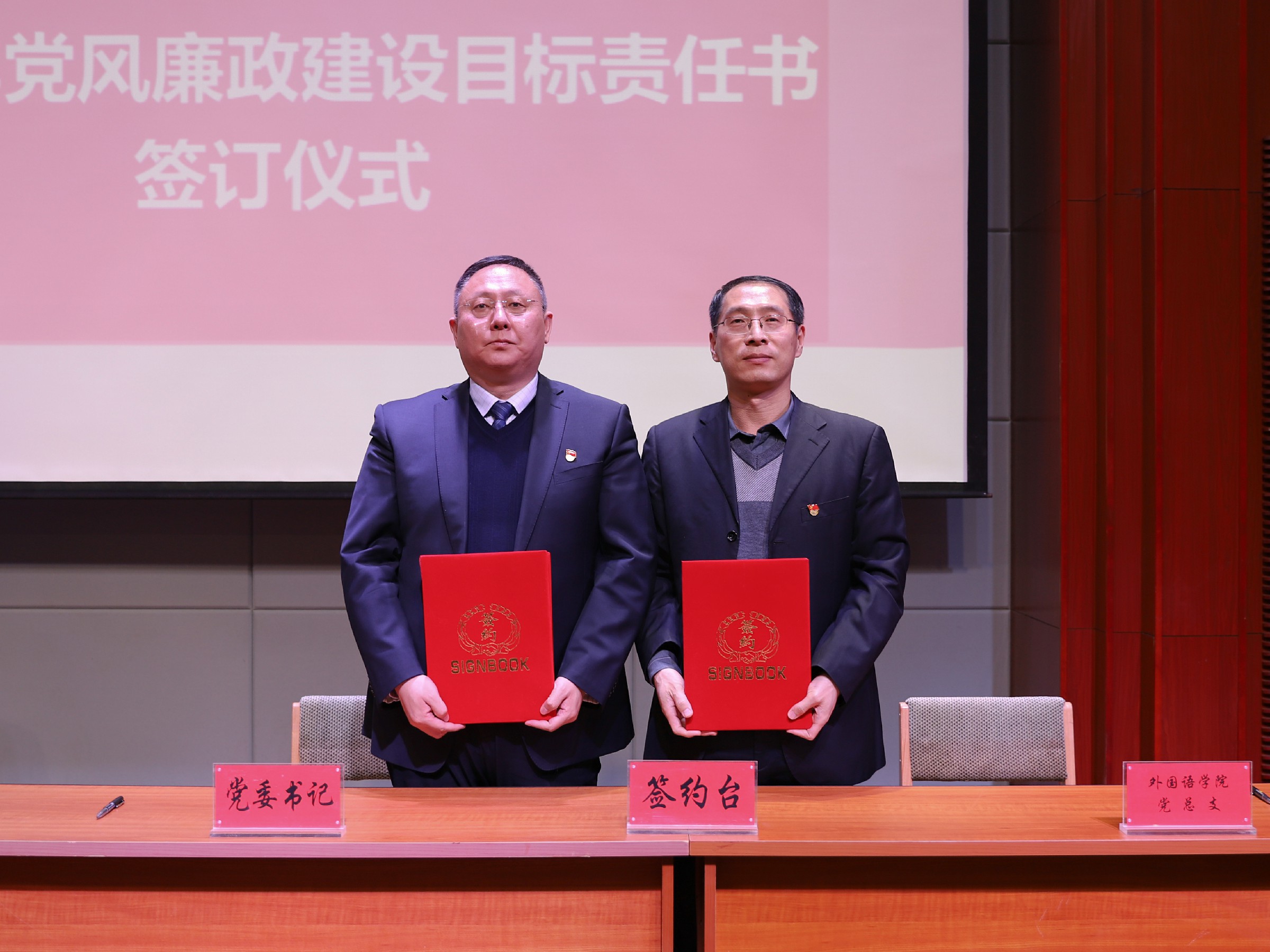 仪式现场,学校党委书记王煊分别与学生工作处、外国语学院党总支签订了2023年党风廉政建设责任书。