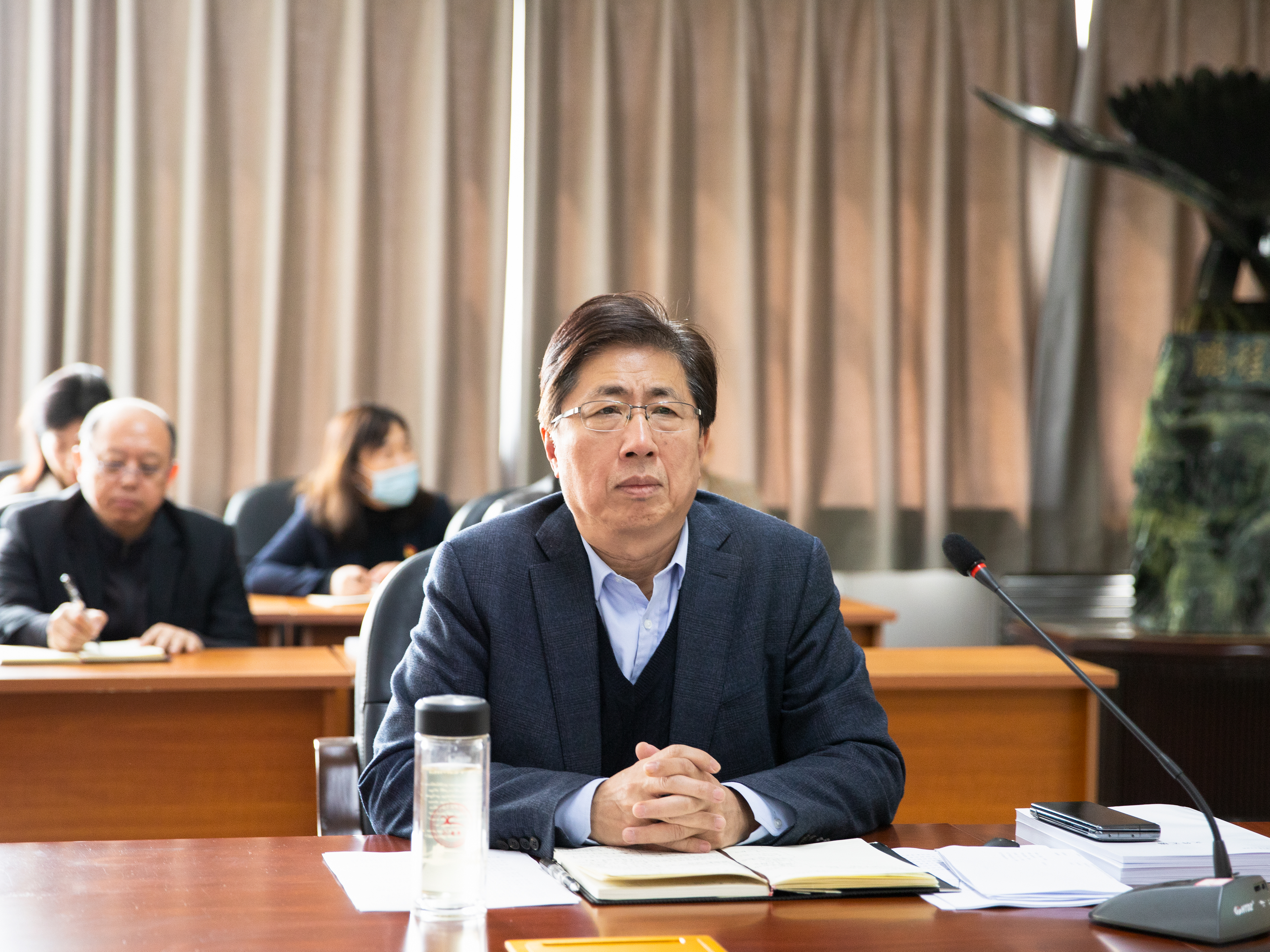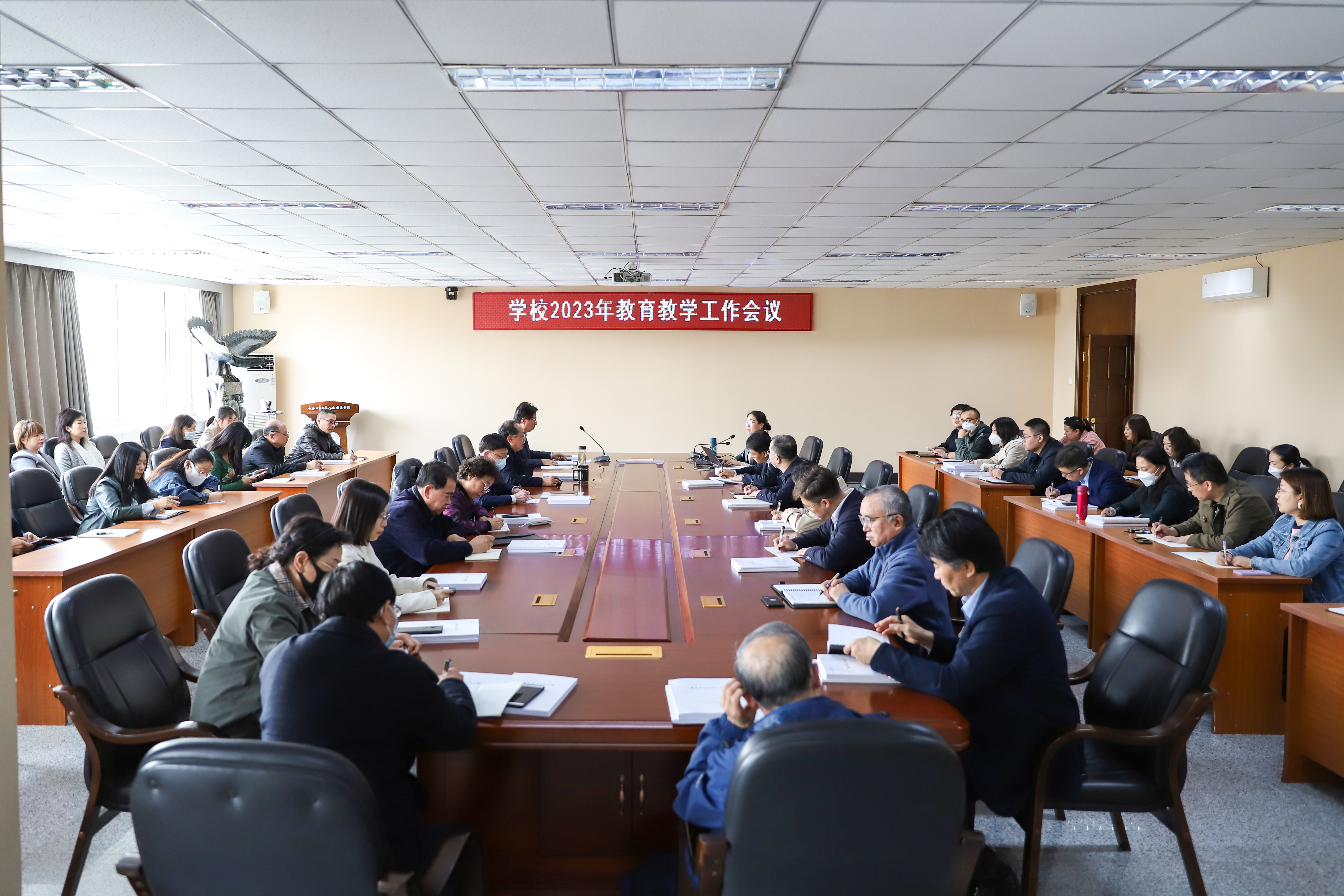 为深入贯彻落实2023年全省本科高等学校教育教学工作会议精神和学校2023年工作要点, 4月19日下午,学校2023年教育教学工作会议在校部三楼会议室召开。校长潘福林、副校长臧玉萍出席会议,教务处、学科办、督学组负责人,各学院(教研部、工程训练中心)院长(主任),副院长(副主任),教学秘书,教务处、学科办全体人员参加会议。会议由臧玉萍主持。