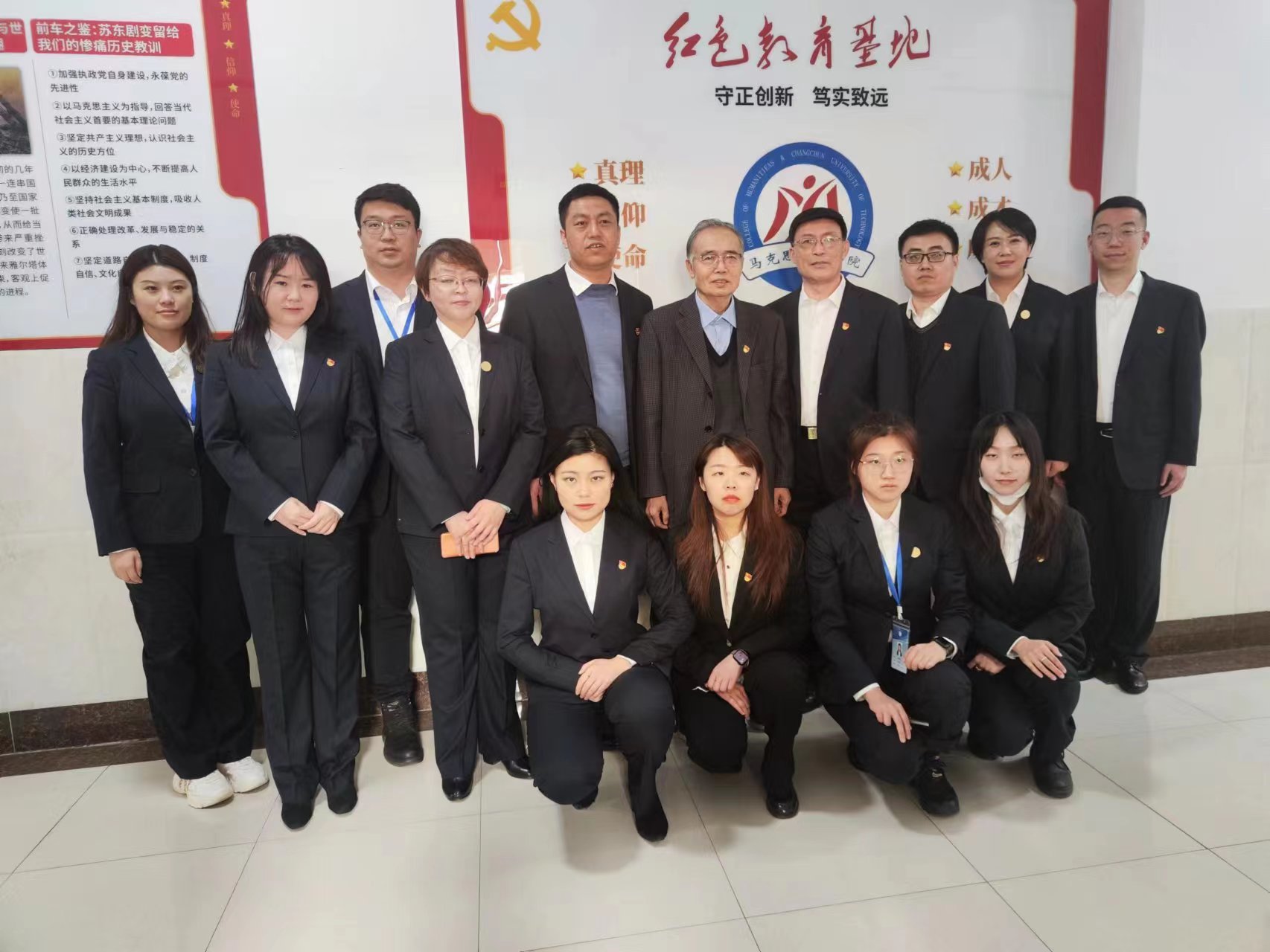 马克思主义学院大力推进思政课实践教学改革,注重课内与课外有机结合,遵照习近平总书记“要把红色资源利用好、把红色传统发扬好、把红色基因传承好”的要求,在学校董事长和党政领导指导下,立足思政课改革的全新场域,历时两年时间,经过系统归纳整理、反复打磨,建设了内容丰富、史实详尽、设计精美、图文并茂的红色文化教育基地,为实现培养学生“成人、成才、成功”目标,造就中国特色社会主义时代新人,创设了新的教育载体。
