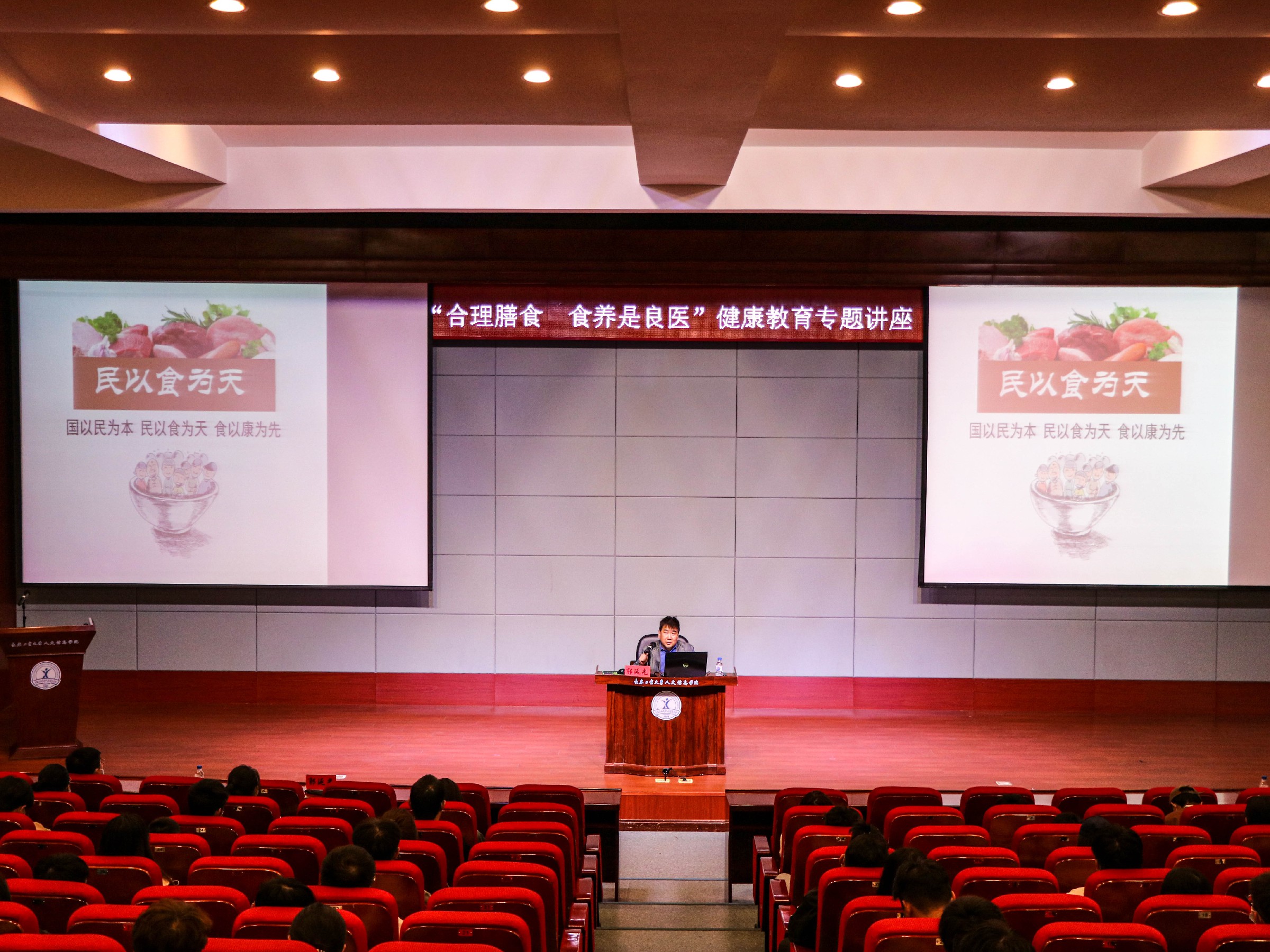 为提高全校师生对饮食健康的认识,我校邀请国家级健康管理师、吉林省健康科普专家郭延光到校开展饮食健康知识讲座,全校二百余名师生代表聆听了本次讲座。报告会由后勤处医务室校医胡雪梅主持。