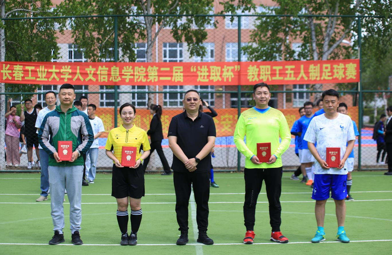经过8天13场的激烈比拼,2023年长春工业大学人文信息学院第二届“进取杯”教职工五人制足球赛于6月2日圆满结束。学校校长潘福林教授、党委书记王煊同志参加闭幕式,并为获奖单位和个人颁奖。学校工会常务副主席、机关党委书记范悦主持颁奖仪式。